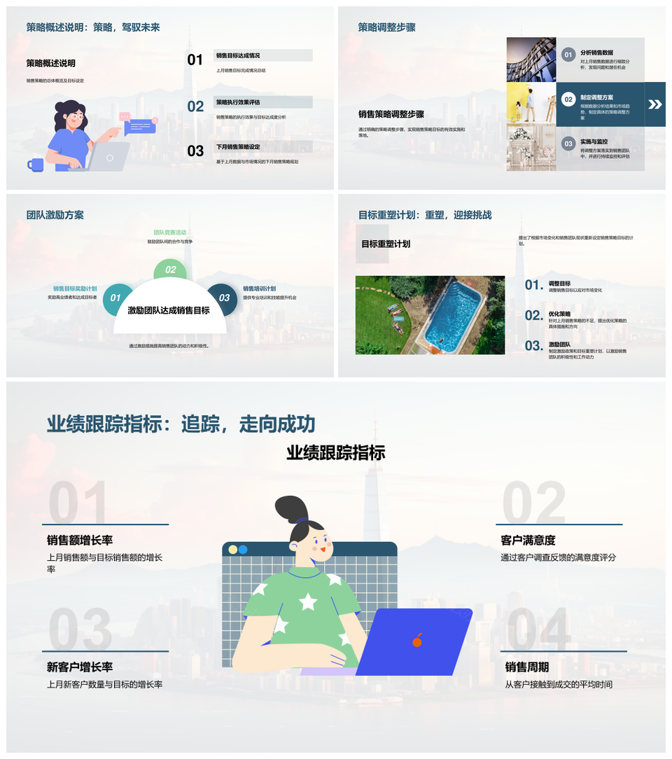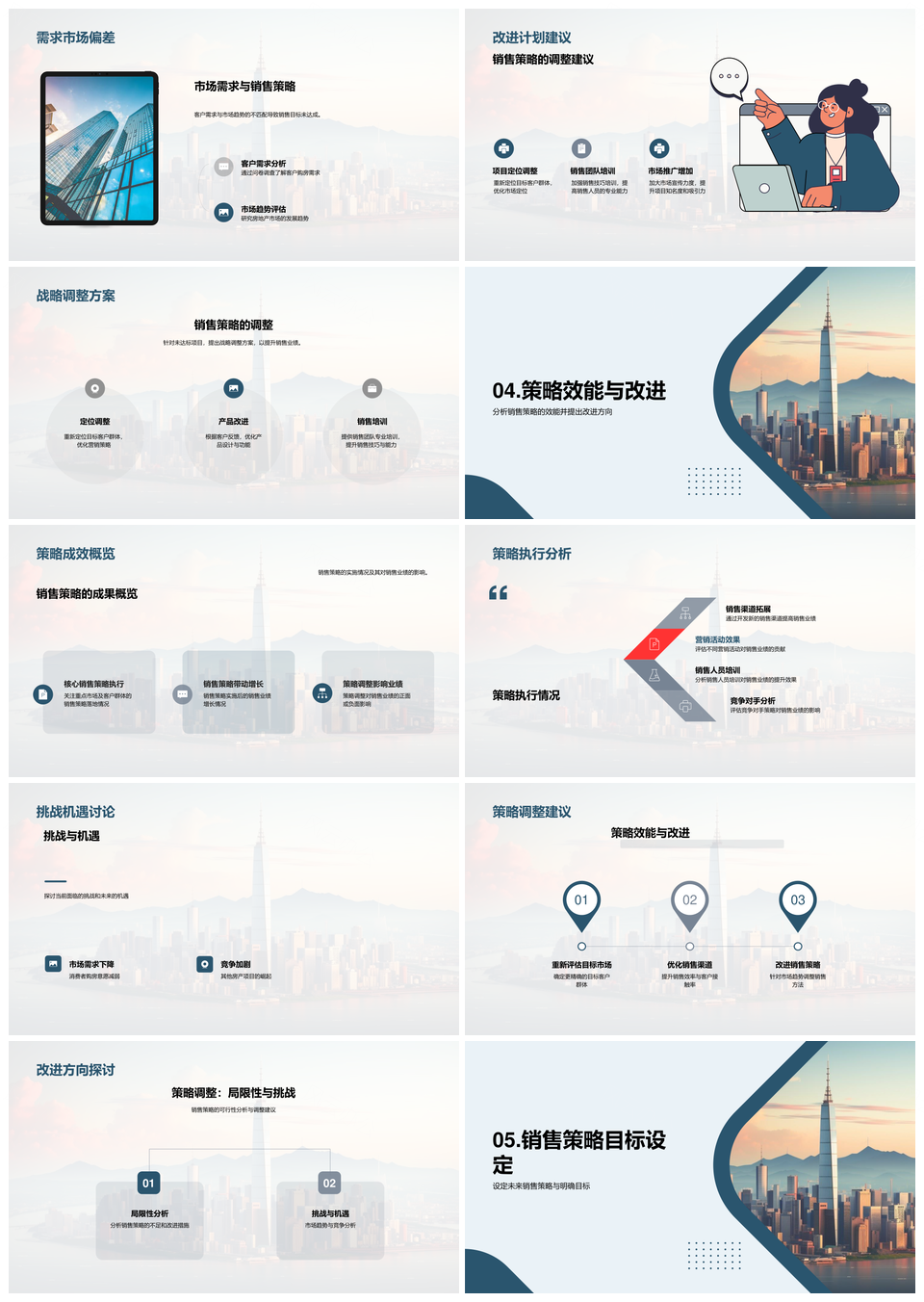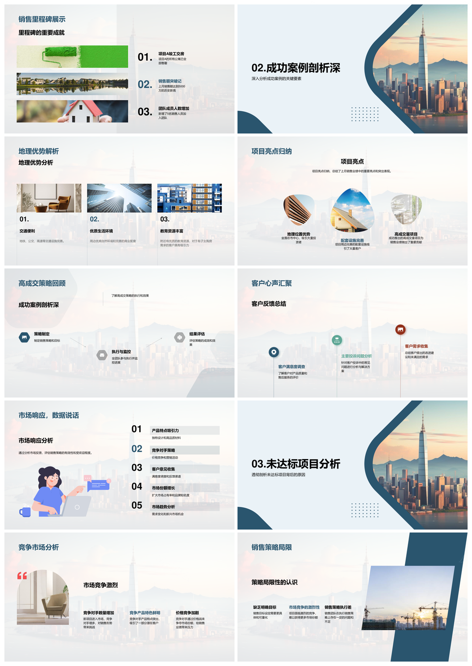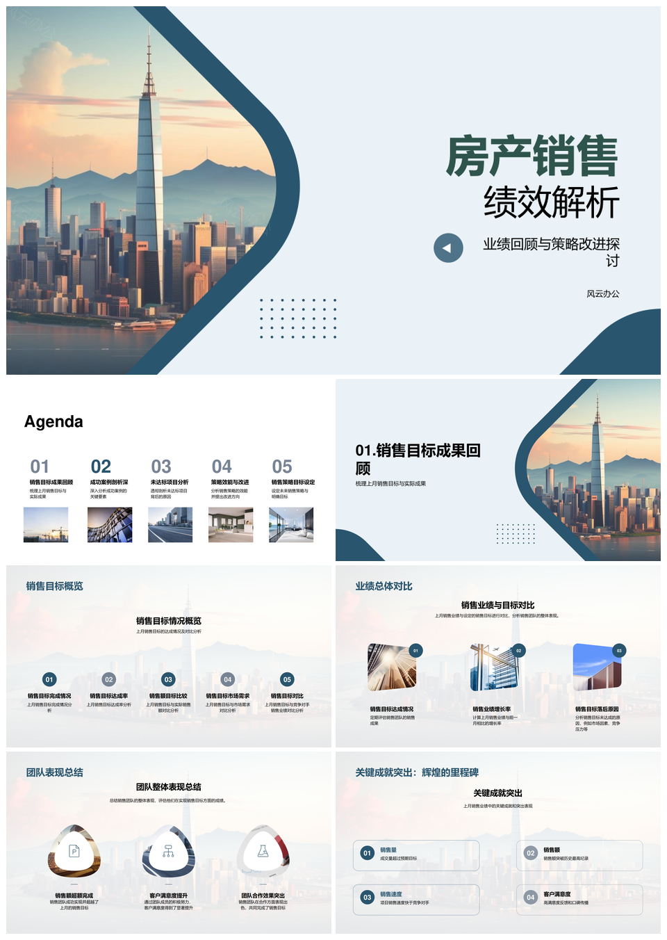 风云办公提供的摩天大楼房产销售绩效解析策略改进PPT模板,下载格式为pptx,一共33页,作品中文字及图均可以修改和编辑,图片更改请在作品中右键图片并更换,文字修改请直接点击文字进行修改。