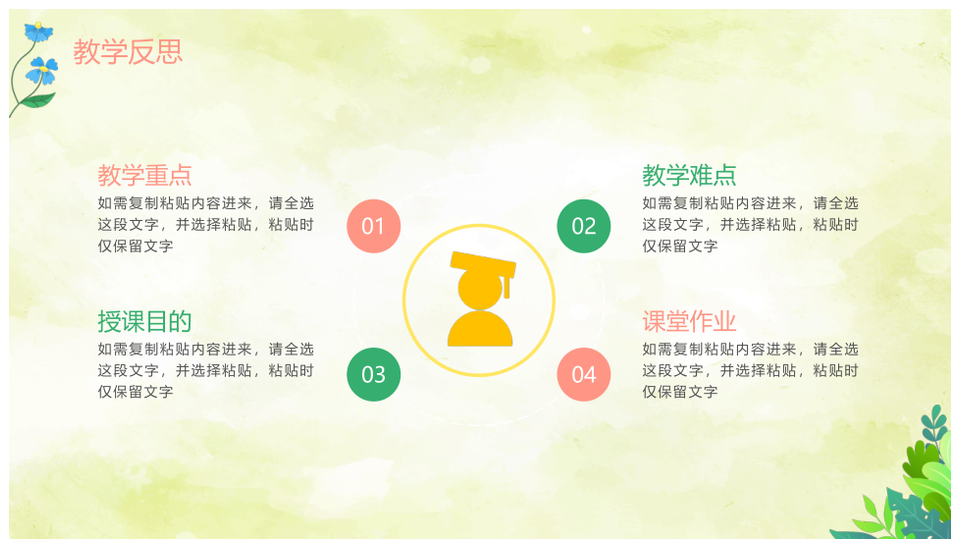 这是一张简约清新绿色水彩绿植教师教学说课PPT模板,包含简约、清新、绿色、水彩、绿植、教师、教学、说课等主题内容,也可用作简约清新绿色水彩、绿色水彩绿植教学、清新绿色水彩绿植、水彩绿植教师教学、简约清新绿植教学、绿色水彩教师说课、清新水彩绿植教师、教师教学说课简约、水彩绿植教学说课、简约绿色水彩教学、绿植教师教学说课、简约清新绿色绿植、简约清新教师教学、简约清新、绿色水彩等PPT场景使用。