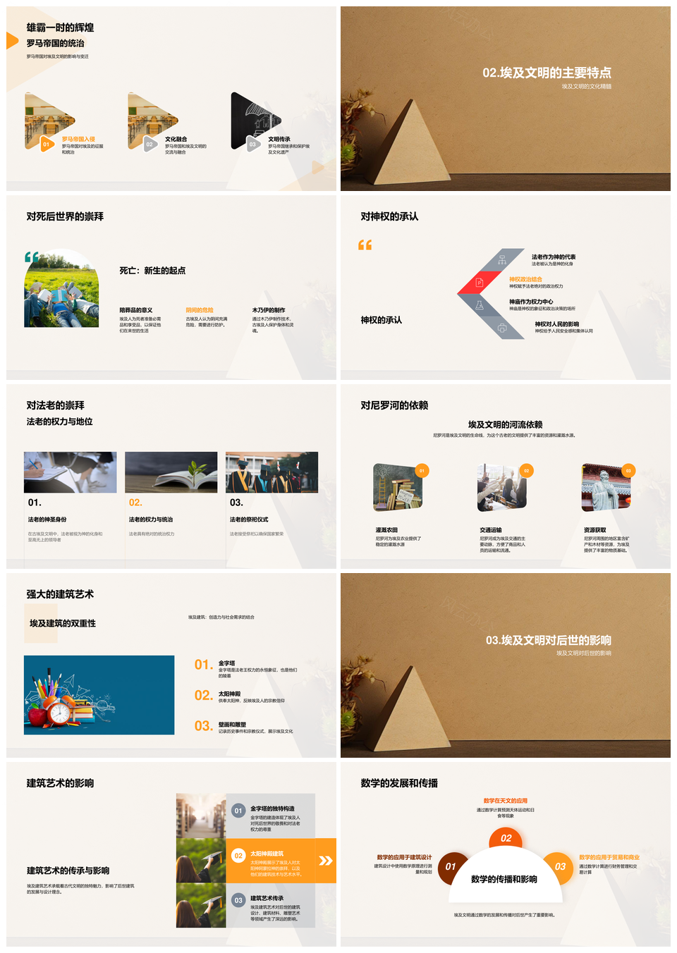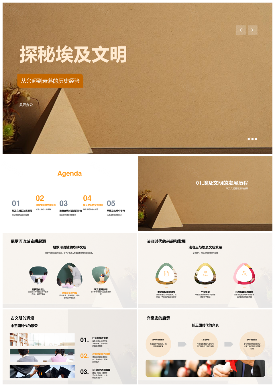 风云办公提供的埃及法老王朝神权与金字塔崇拜探秘PPT模板,下载格式为pptx,一共29页,作品中文字及图均可以修改和编辑,图片更改请在作品中右键图片并更换,文字修改请直接点击文字进行修改。