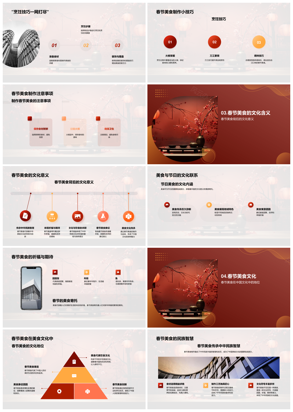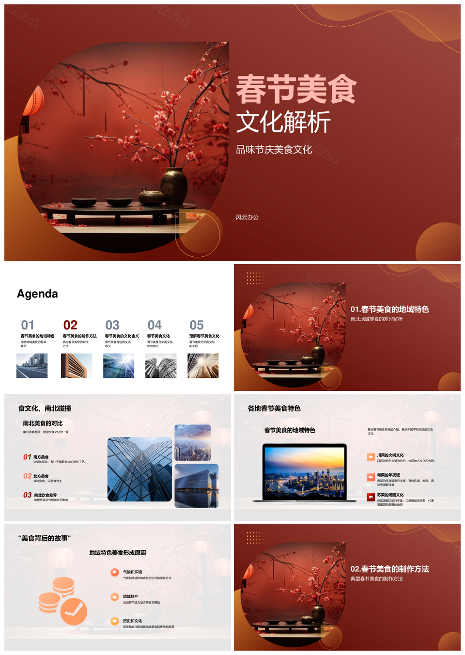风云办公提供的春节美食地域特色制作方法文化解析PPT模板,下载格式为pptx,一共23页,作品中文字及图均可以修改和编辑,图片更改请在作品中右键图片并更换,文字修改请直接点击文字进行修改。