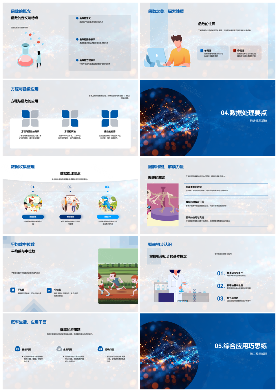 风云办公提供的初二数学全科题海策略与时间管理提高PPT模板,下载格式为pptx,一共33页,作品中文字及图均可以修改和编辑,图片更改请在作品中右键图片并更换,文字修改请直接点击文字进行修改。