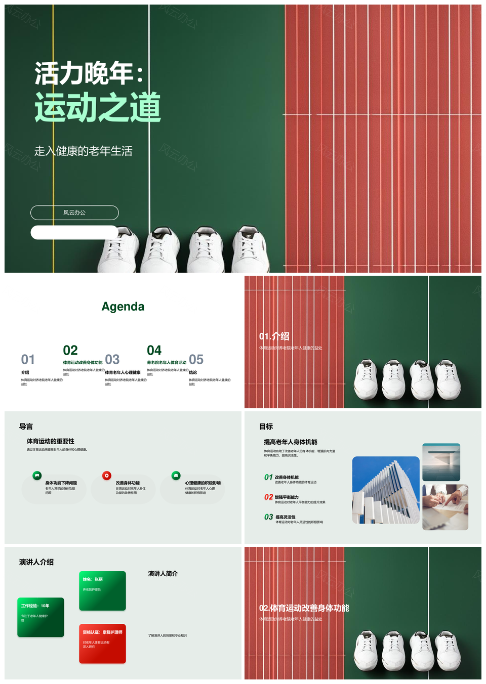 风云办公提供的老年人运动强肌增灵活缓焦虑促健康PPT模板,下载格式为pptx,一共26页,作品中文字及图均可以修改和编辑,图片更改请在作品中右键图片并更换,文字修改请直接点击文字进行修改。
