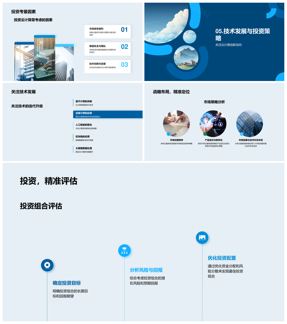 风云办公提供的云计算技术革新驱动市场投资趋势PPT模板,下载格式为pptx,一共23页,作品中文字及图均可以修改和编辑,图片更改请在作品中右键图片并更换,文字修改请直接点击文字进行修改。