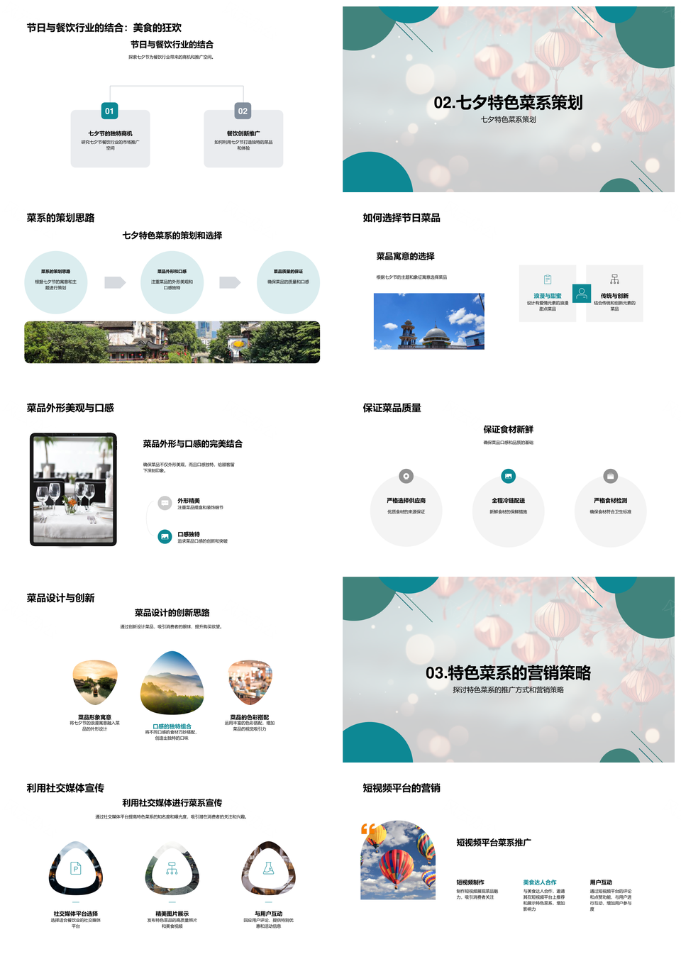 这是一张七夕餐饮特色创新菜短视频营销销量提升PPT模板,包含七夕、餐饮、特色、创新菜、短视频、营销、销量提升等主题内容,也可用作七夕餐饮特色创新、七夕餐饮短视频营销、餐饮特色创新短视频、特色创新短视频营销、短视频营销销量提升、七夕短视频营销、短视频营销销量、短视频销量提升、餐饮特色创新、特色创新短视频、创新短视频营销、餐饮短视频营销、七夕餐饮、餐饮特色、销量提升等PPT场景使用。 风云办公提供的七夕餐饮特色创新菜短视频营销销量提升PPT模板,下载格式为pptx,一共33页,作品中文字及图均可以修改和编辑,图片更改请在作品中右键图片并更换,文字修改请直接点击文字进行修改。