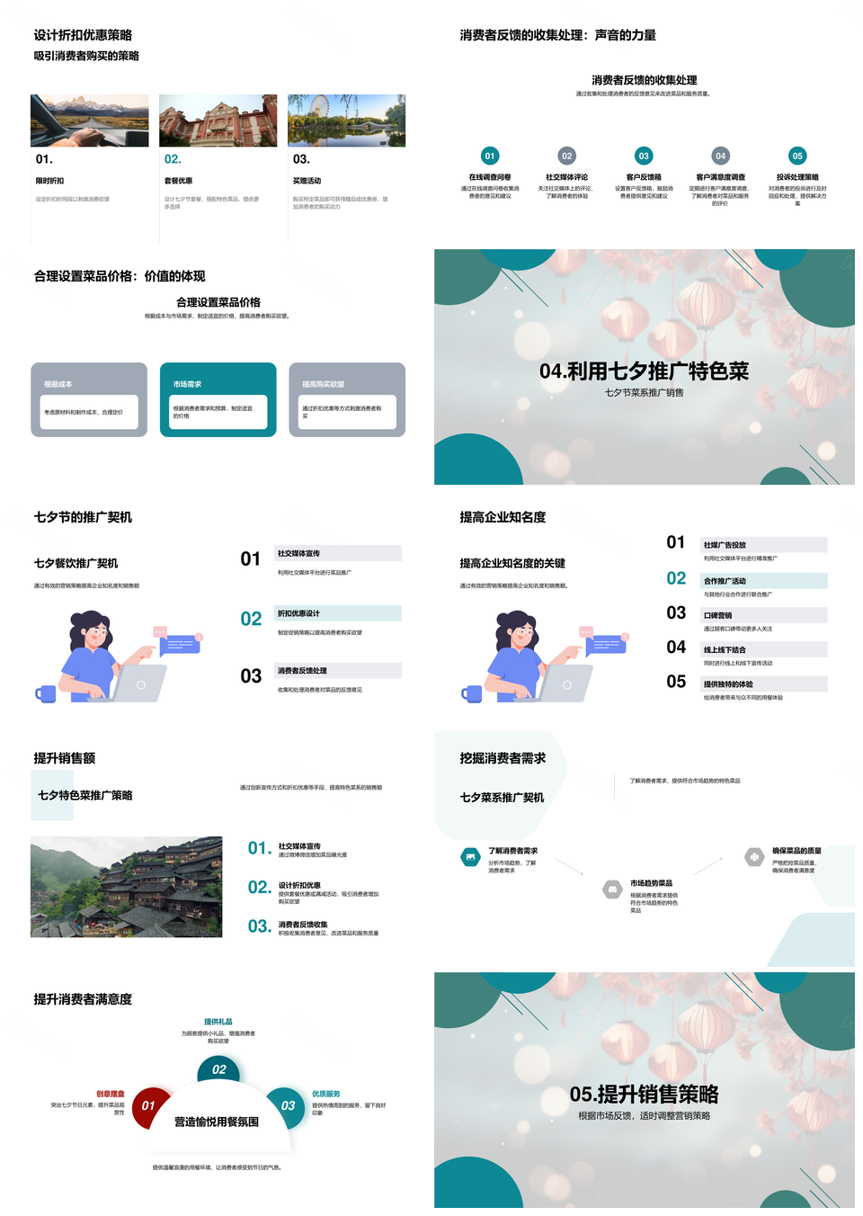七夕餐饮营销培训提升销售客户满意套餐装饰质量服务PPT模板
