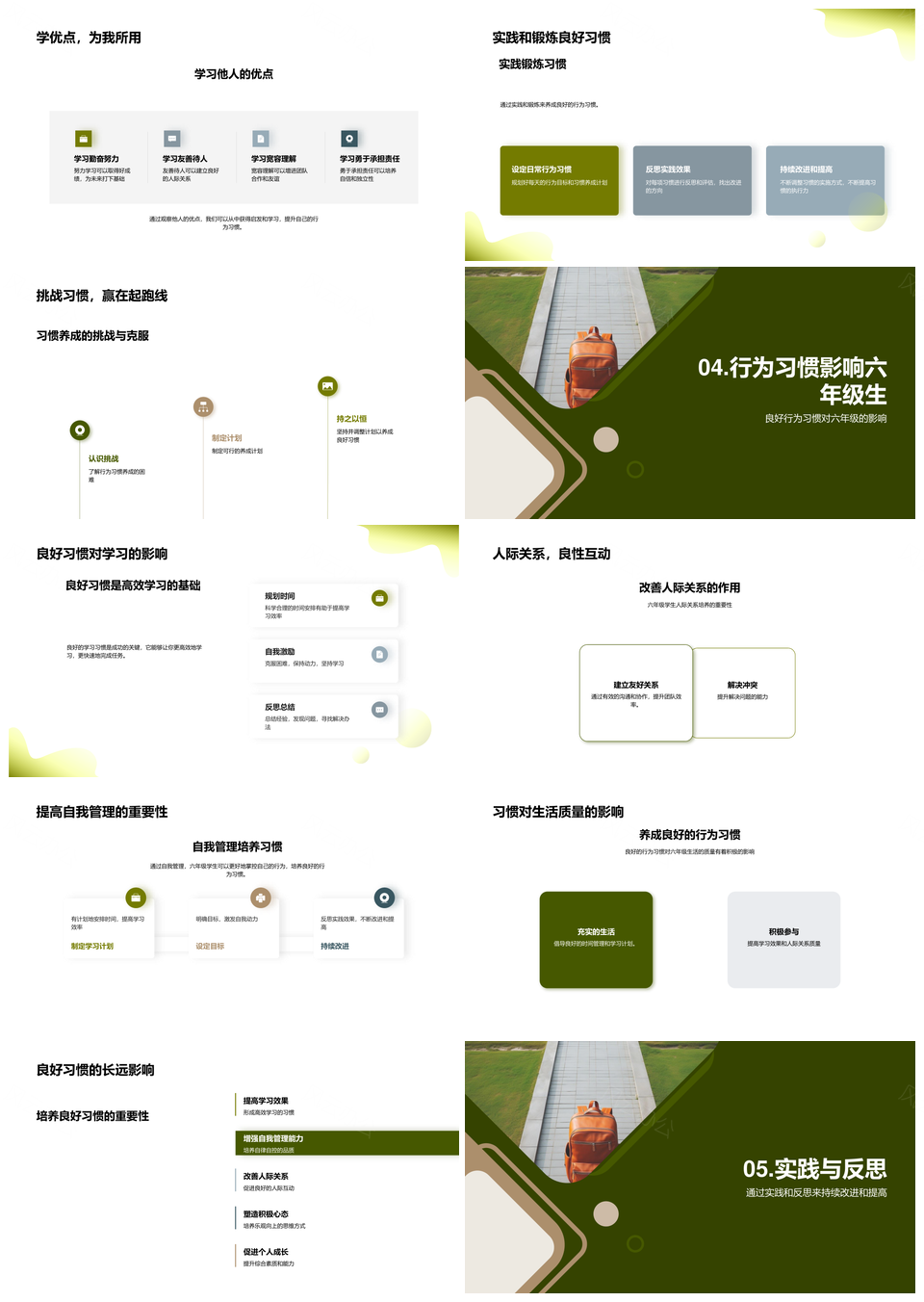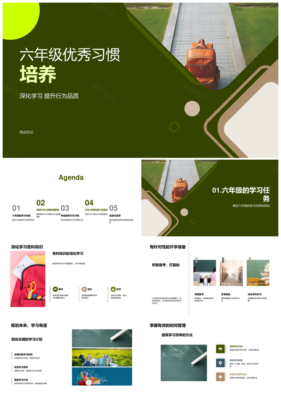 六年级学习品行升学时间习惯培养PPT模板推荐