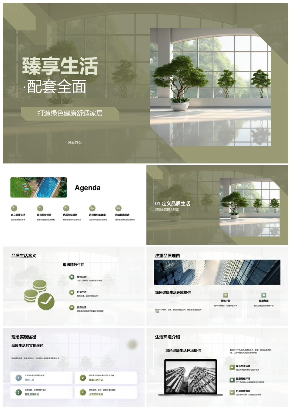 臻享品质生活绿色健康家居全配套优物业PPT模板