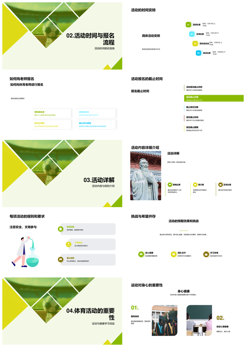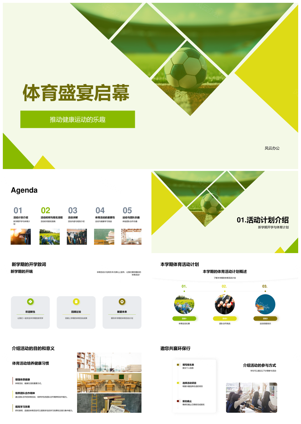 风云办公提供的新学期体育盛宴健康运动计划启动报名PPT模板,下载格式为pptx,一共25页,作品中文字及图均可以修改和编辑,图片更改请在作品中右键图片并更换,文字修改请直接点击文字进行修改。
