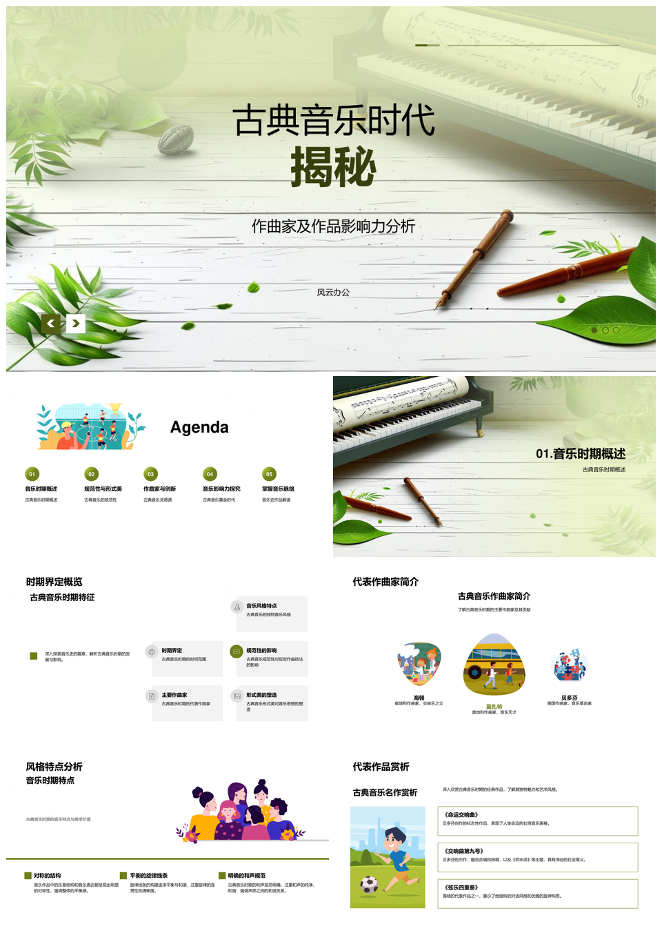 风云办公提供的古典音乐规范形式美与作曲家历史影响PPT模板,下载格式为pptx,一共33页,作品中文字及图均可以修改和编辑,图片更改请在作品中右键图片并更换,文字修改请直接点击文字进行修改。
