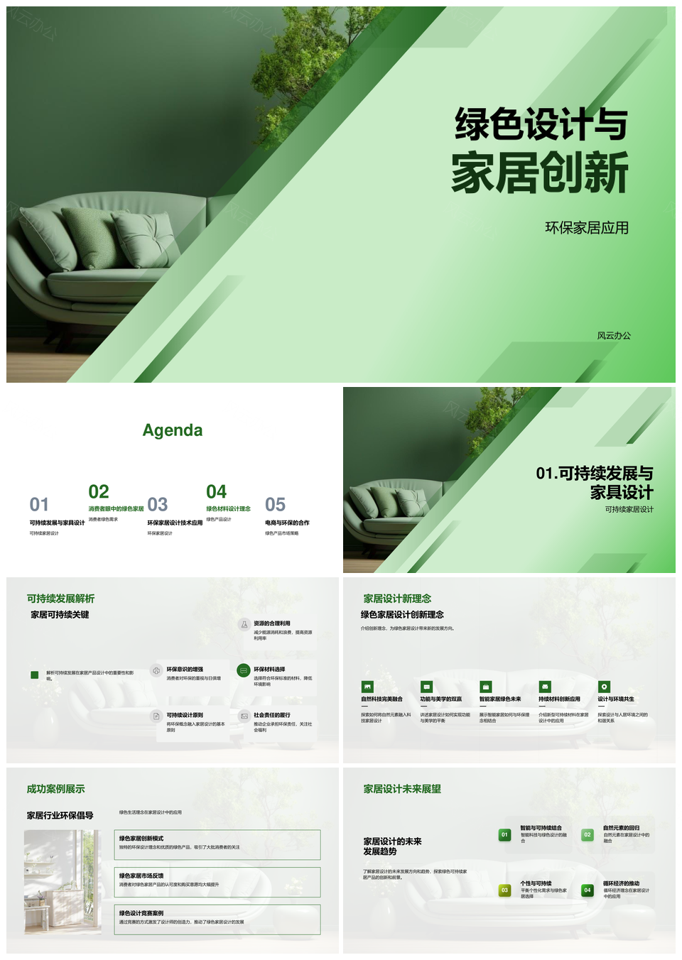 风云办公提供的绿色设计驱动环保家居可持续创新发展PPT模板,下载格式为pptx,一共33页,作品中文字及图均可以修改和编辑,图片更改请在作品中右键图片并更换,文字修改请直接点击文字进行修改。