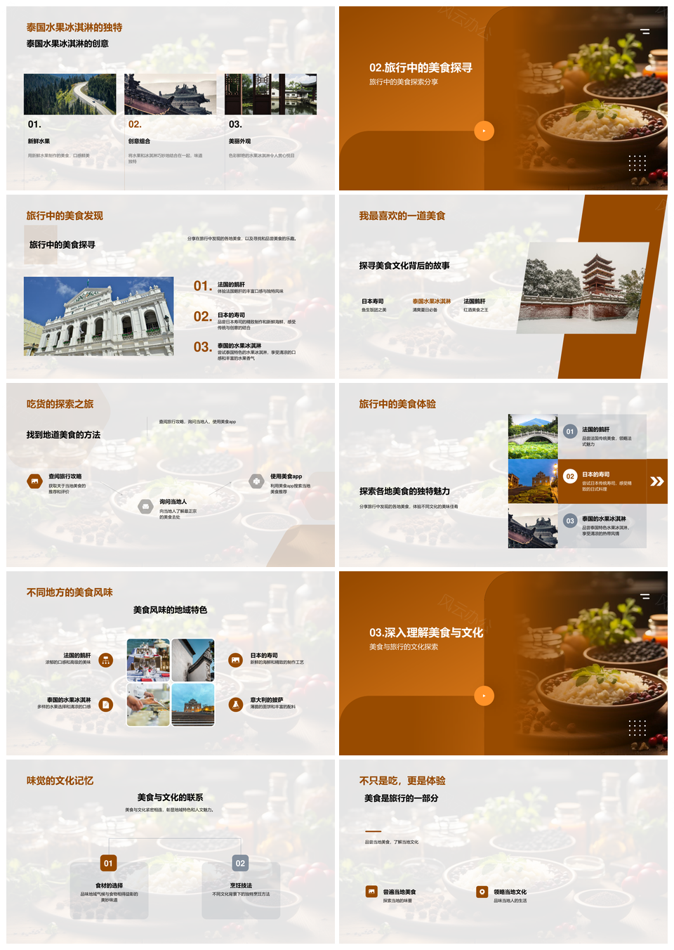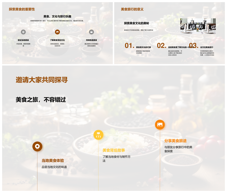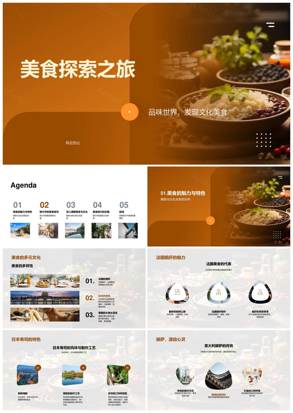 这是一张环球文化美食探索之旅策划与爱好者共赏法日佳肴PPT模板,包含环球文化、美食探索之旅、策划、爱好者、共赏、法日佳肴等主题内容,也可用作环球文化美食探索之旅、策划爱好者共赏法日佳肴、文化美食探索之旅策划、探索之旅策划爱好者、爱好者共赏法日佳肴、环球文化美食探索、文化美食探索之旅、美食探索之旅策划、共赏法日佳肴、环球文化美食、文化探索之旅、美食探索之旅、探索之旅策划、策划爱好者、爱好者共赏等PPT场景使用。 风云办公提供的环球文化美食探索之旅策划与爱好者共赏法日佳肴PPT模板,下载格式为pptx,一共31页,作品中文字及图均可以修改和编辑,图片更改请在作品中右键图片并更换,文字修改请直接点击文字进行修改。