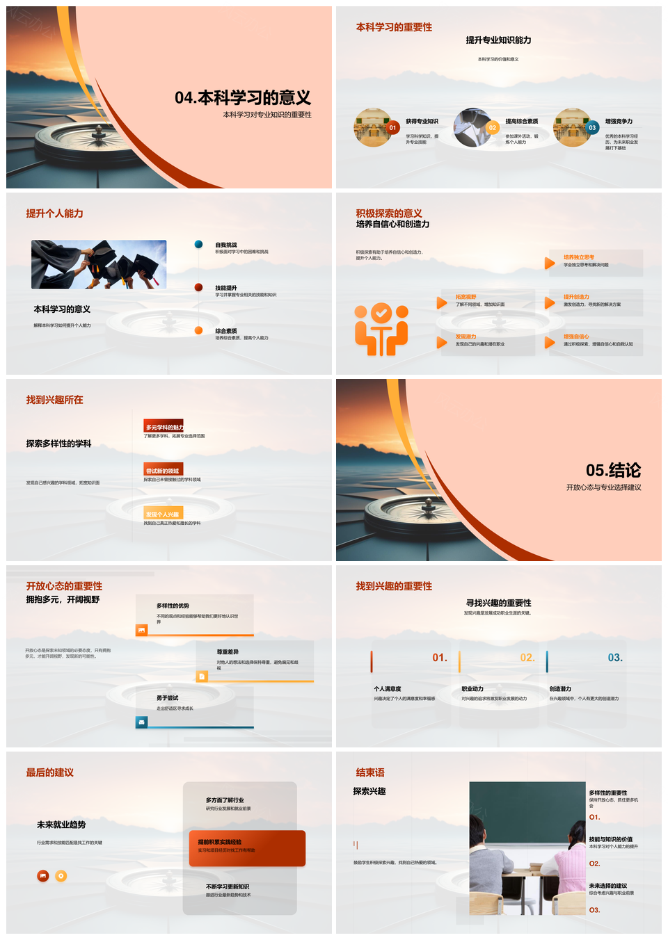 这是一张本科专业选择经验技能学习开放心态毕业之路PPT模板,包含本科专业、选择、经验、技能、学习、开放、心态、毕业、之路等主题内容,也可用作本科专业选择经验技能学习、本科专业选择经验技能、专业选择经验技能学习、经验技能学习开放心态、技能学习开放心态毕业、学习开放心态毕业之路、本科专业选择经验、专业选择经验技能、选择经验技能学习、经验技能学习开放、技能学习开放心态、学习开放心态毕业、开放心态毕业之路、本科专业选择、专业选择经验等PPT场景使用。 风云办公提供的本科专业选择经验技能学习开放心态毕业之路PPT模板,下载格式为pptx,一共28页,作品中文字及图均可以修改和编辑,图片更改请在作品中右键图片并更换,文字修改请直接点击文字进行修改。