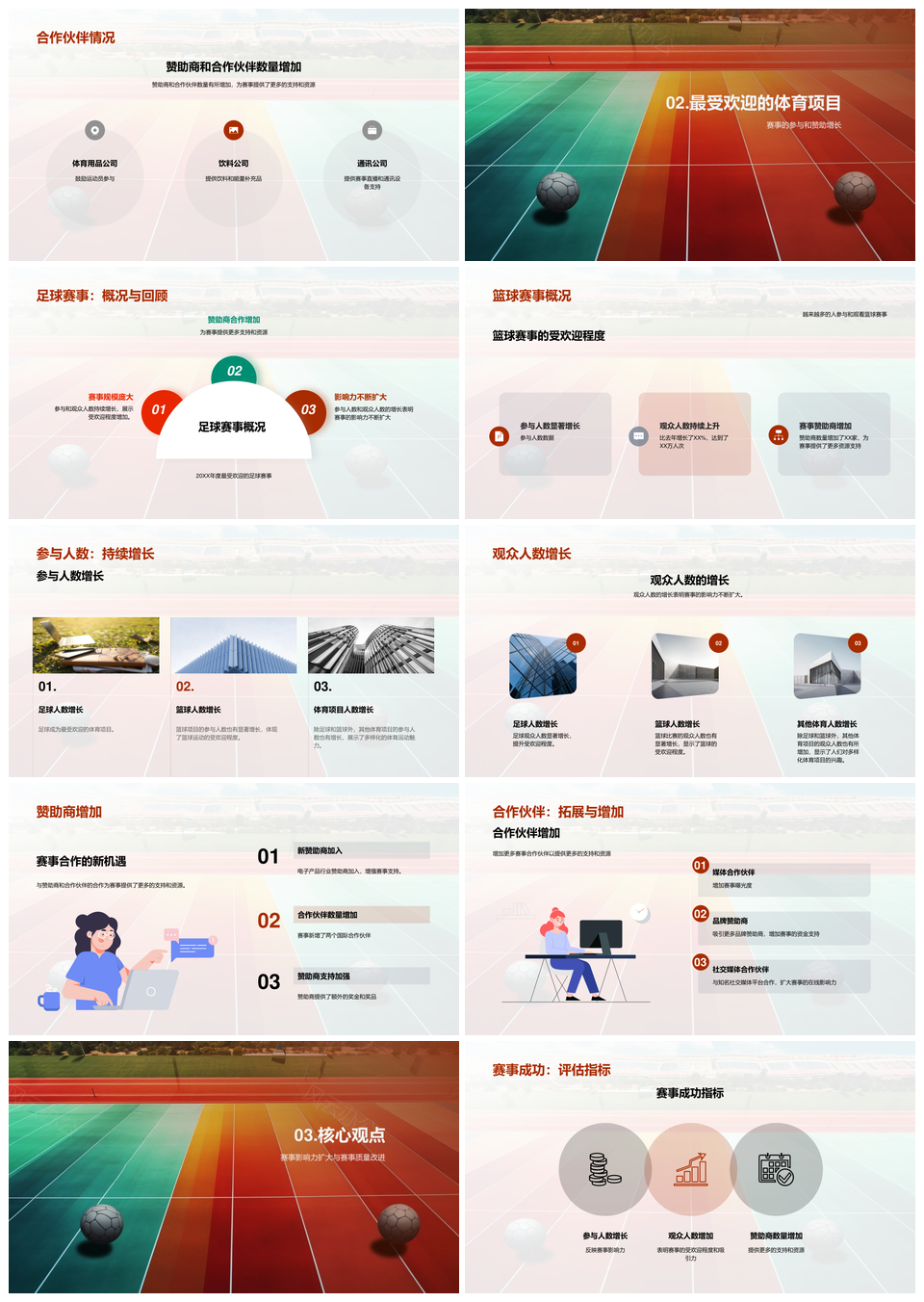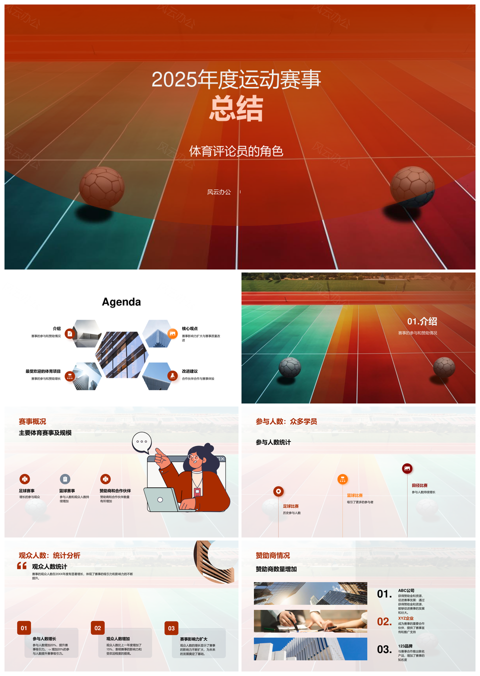 2025体育评论员赛事组织者年度体育项目规模参与观众赞助伙伴麦克风PPT模板推荐