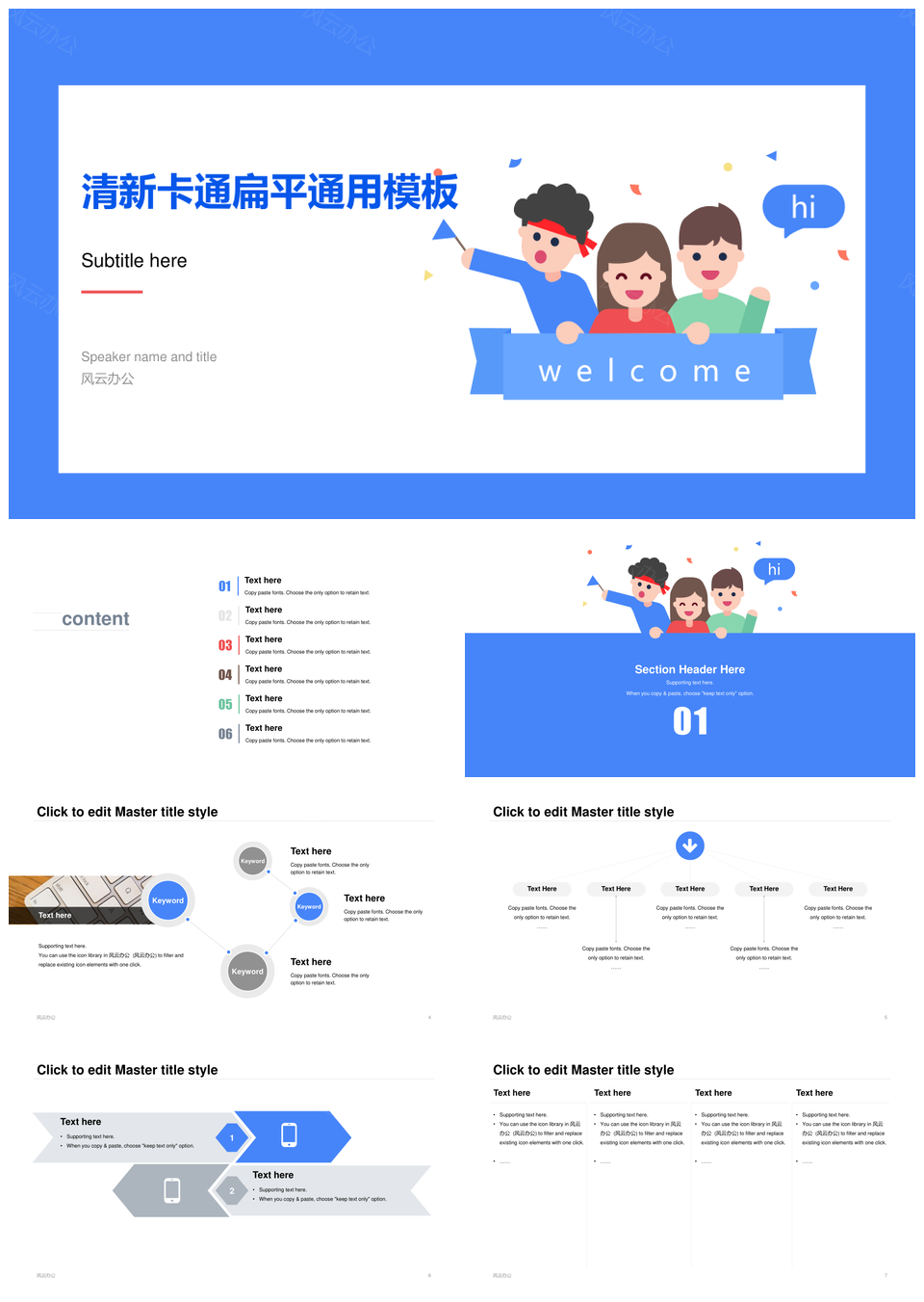 风云办公提供的清新卡通扁平风教育培优总结PPT模板,下载格式为pptx,一共32页,作品中文字及图均可以修改和编辑,图片更改请在作品中右键图片并更换,文字修改请直接点击文字进行修改。