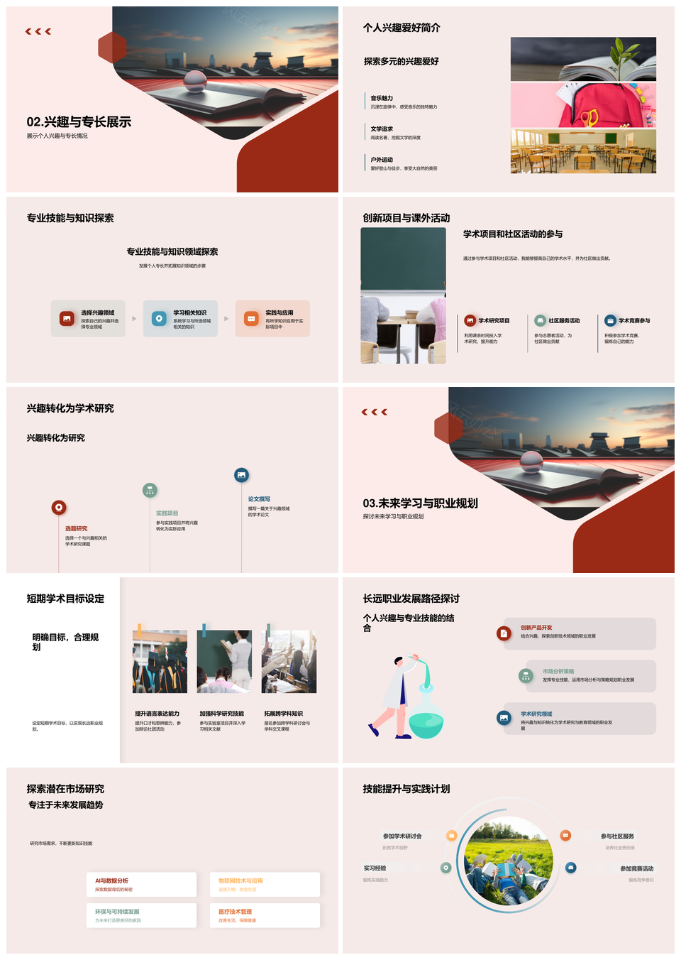 这是一张学生成长全景学业职业成绩兴趣技能知识书PPT模板,包含学生、成长、全景、学业、职业、成绩、兴趣、技能、知识、书等主题内容,也可用作学生成长全景学业职业成绩兴趣技能知识、学生成长全景学业职业成绩兴趣技能、学生成长全景学业职业成绩兴趣、成长全景学业职业成绩兴趣技能、全景学业职业成绩兴趣技能知识、学业职业成绩兴趣技能知识、职业成绩兴趣技能知识、学生成长全景学业职业成绩、学生成长全景学业职业、成长全景学业职业成绩、学业职业成绩兴趣技能、成绩兴趣技能知识、学生成长学业职业、成长学业职业成绩、全景学业职业成绩等PPT场景使用。 风云办公提供的学生成长全景学业职业成绩兴趣技能知识书PPT模板,下载格式为pptx,一共28页,作品中文字及图均可以修改和编辑,图片更改请在作品中右键图片并更换,文字修改请直接点击文字进行修改。