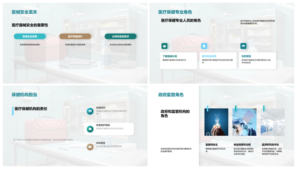 这是一张医疗器械安全使用管理临床工程师分类功能安全标准PPT模板,包含医疗器械、安全使用、管理、临床工程师、分类、功能、安全标准等主题内容,也可用作医疗器械安全使用管理临床工程师、医疗器械安全使用管理功能安全标准、医疗器械安全使用管理分类、医疗器械安全使用临床工程师分类、安全使用管理临床工程师功能安全标准、管理临床工程师分类功能安全标准、安全使用管理分类功能安全标准、医疗器械管理分类功能安全标准、医疗器械安全使用管理、安全使用管理临床工程师、管理临床工程师分类、临床工程师分类功能安全标准、医疗器械安全使用、安全使用管理、分类功能安全标准等PPT场景使用。 风云办公提供的医疗器械安全使用管理临床工程师分类功能安全标准PPT模板,下载格式为pptx,一共22页,作品中文字及图均可以修改和编辑,图片更改请在作品中右键图片并更换,文字修改请直接点击文字进行修改。