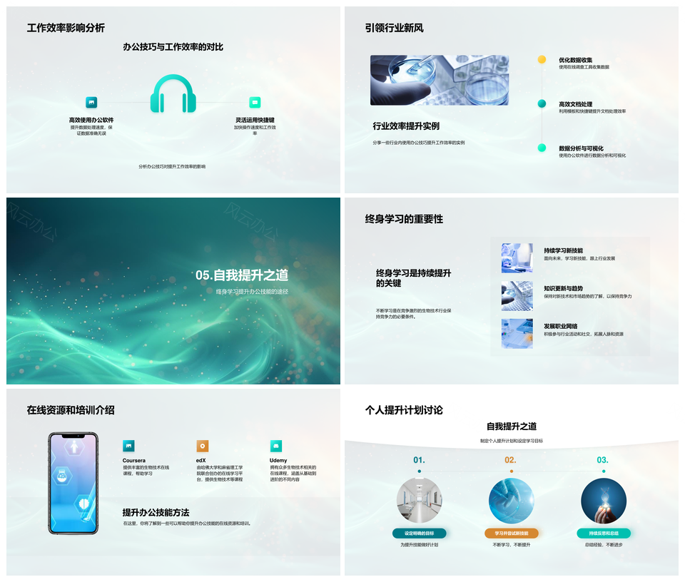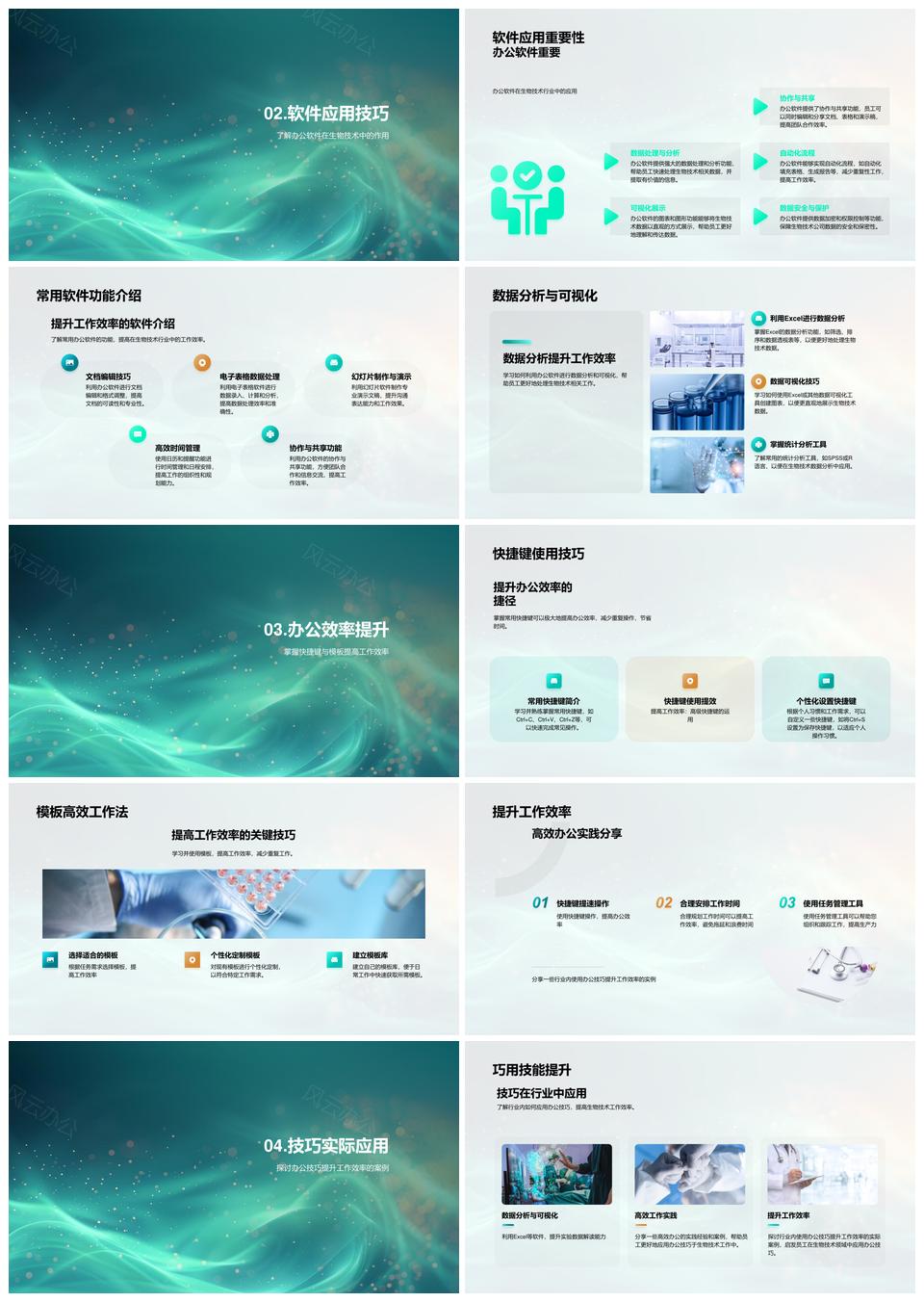 生物技术办公效能培训数据可视化快捷键应用PPT模板推荐