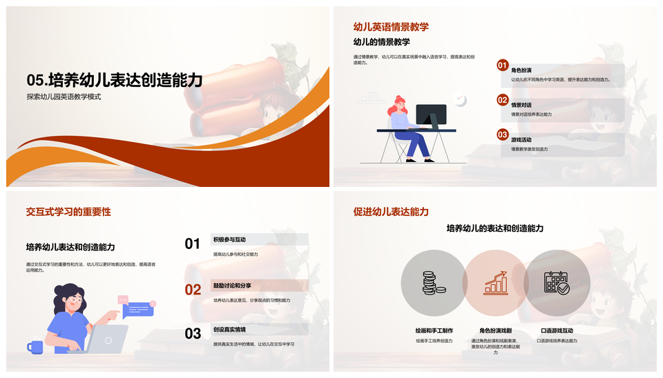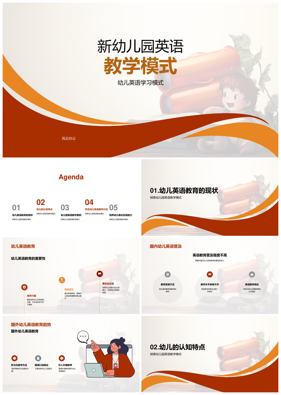 国内外幼儿英语情景教学模式与表达培养PPT模板推荐