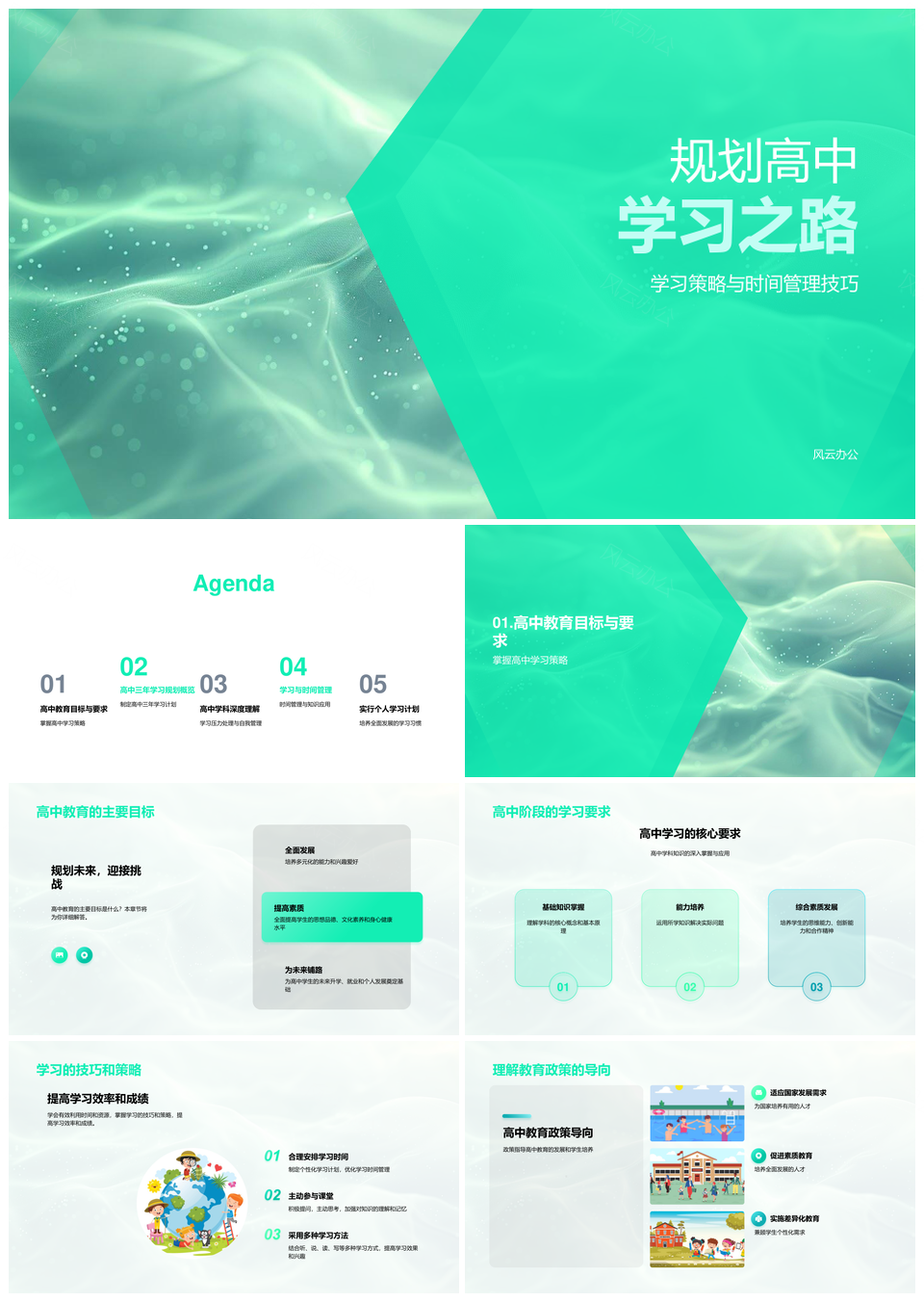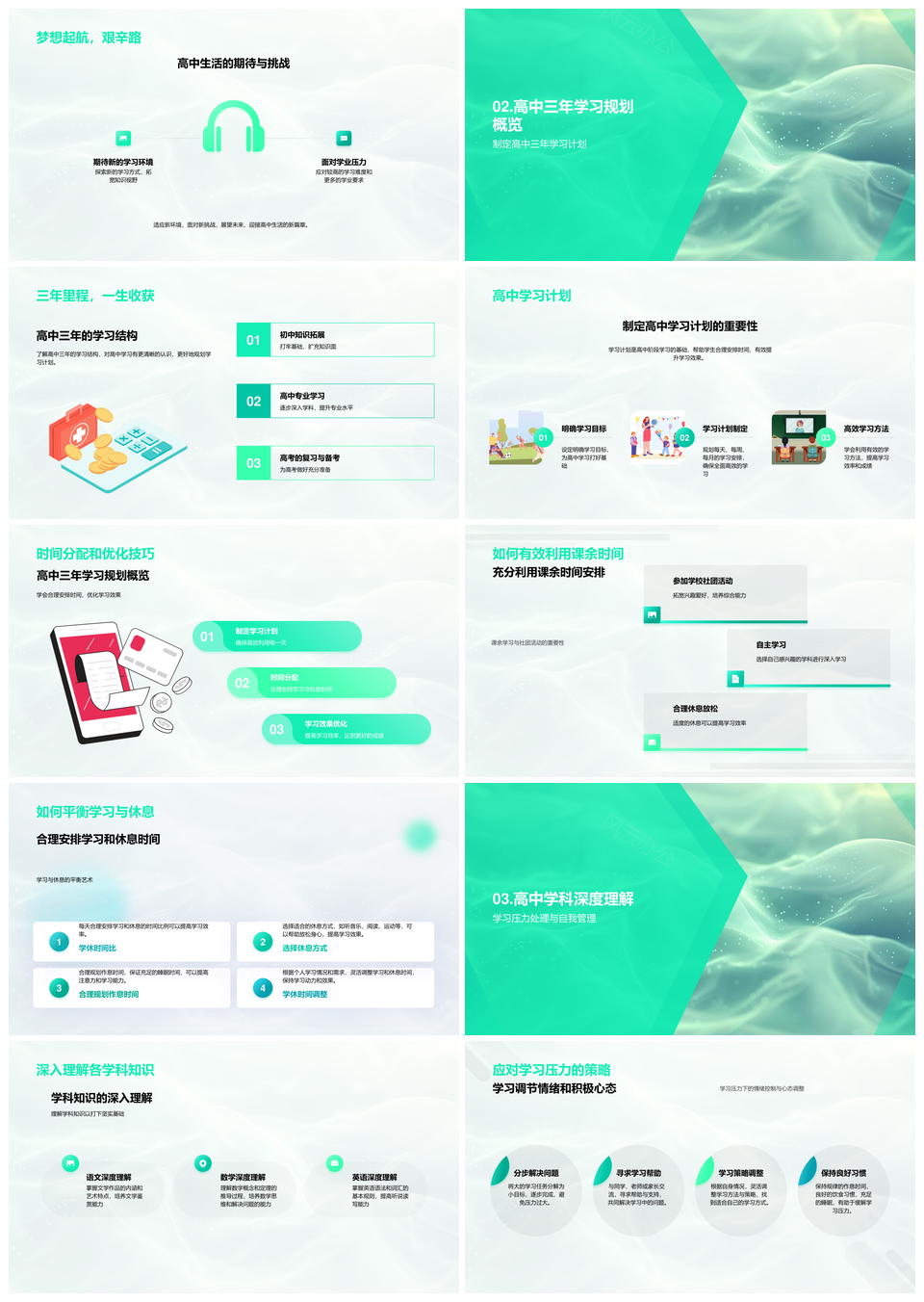 高中学习规划策略时间管理提效应对压力PPT模板推荐