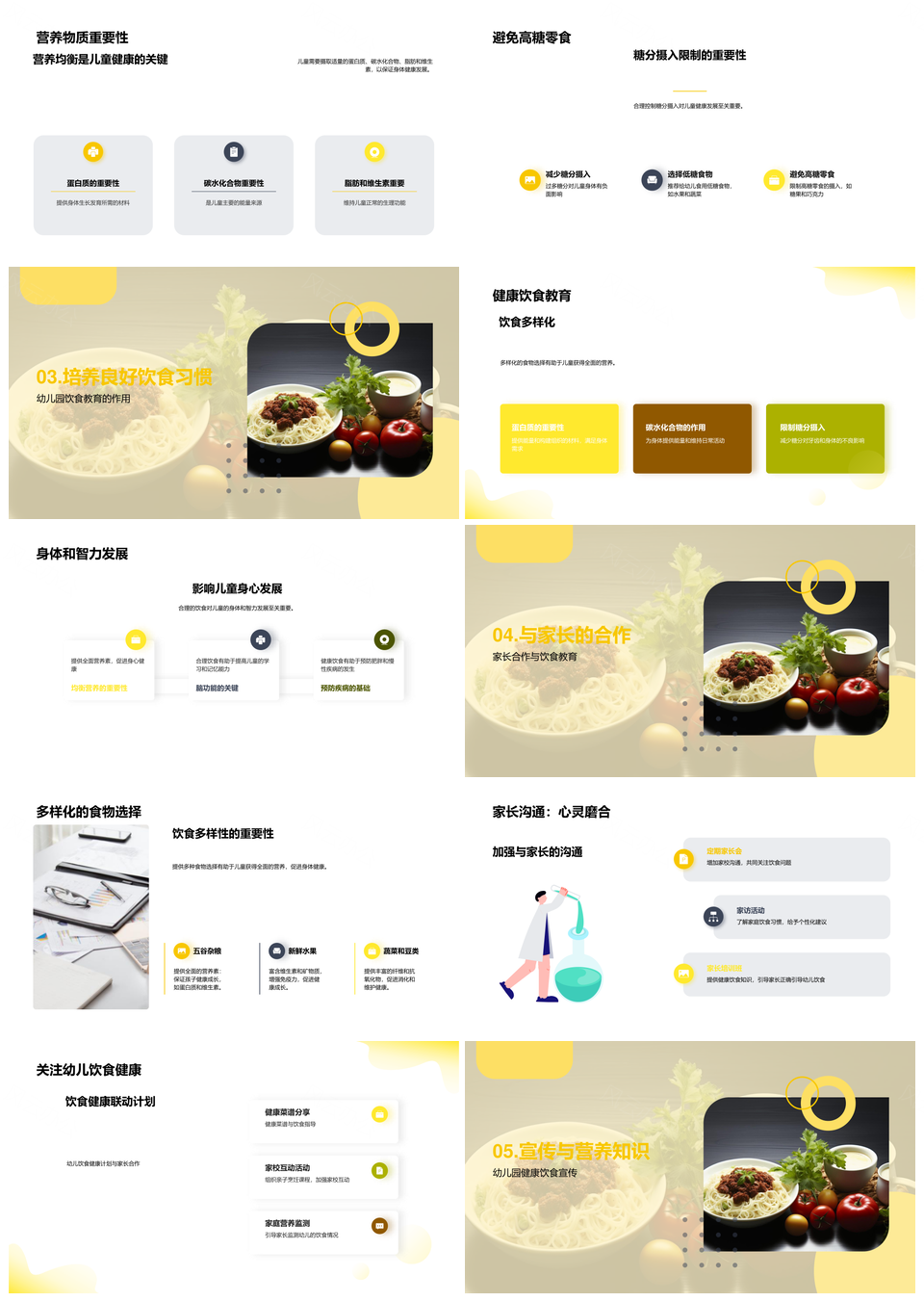 幼儿园教师指导健康饮食多样蛋白碳水教育PPT模板推荐