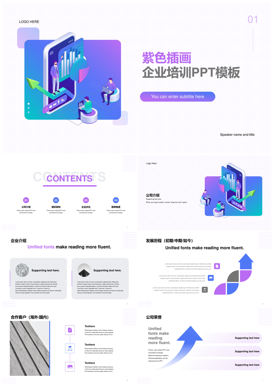 风云办公提供的紫色插画职场办公教育培训PPT模板,下载格式为pptx,一共21页,作品中文字及图均可以修改和编辑,图片更改请在作品中右键图片并更换,文字修改请直接点击文字进行修改。