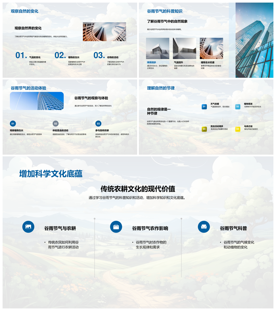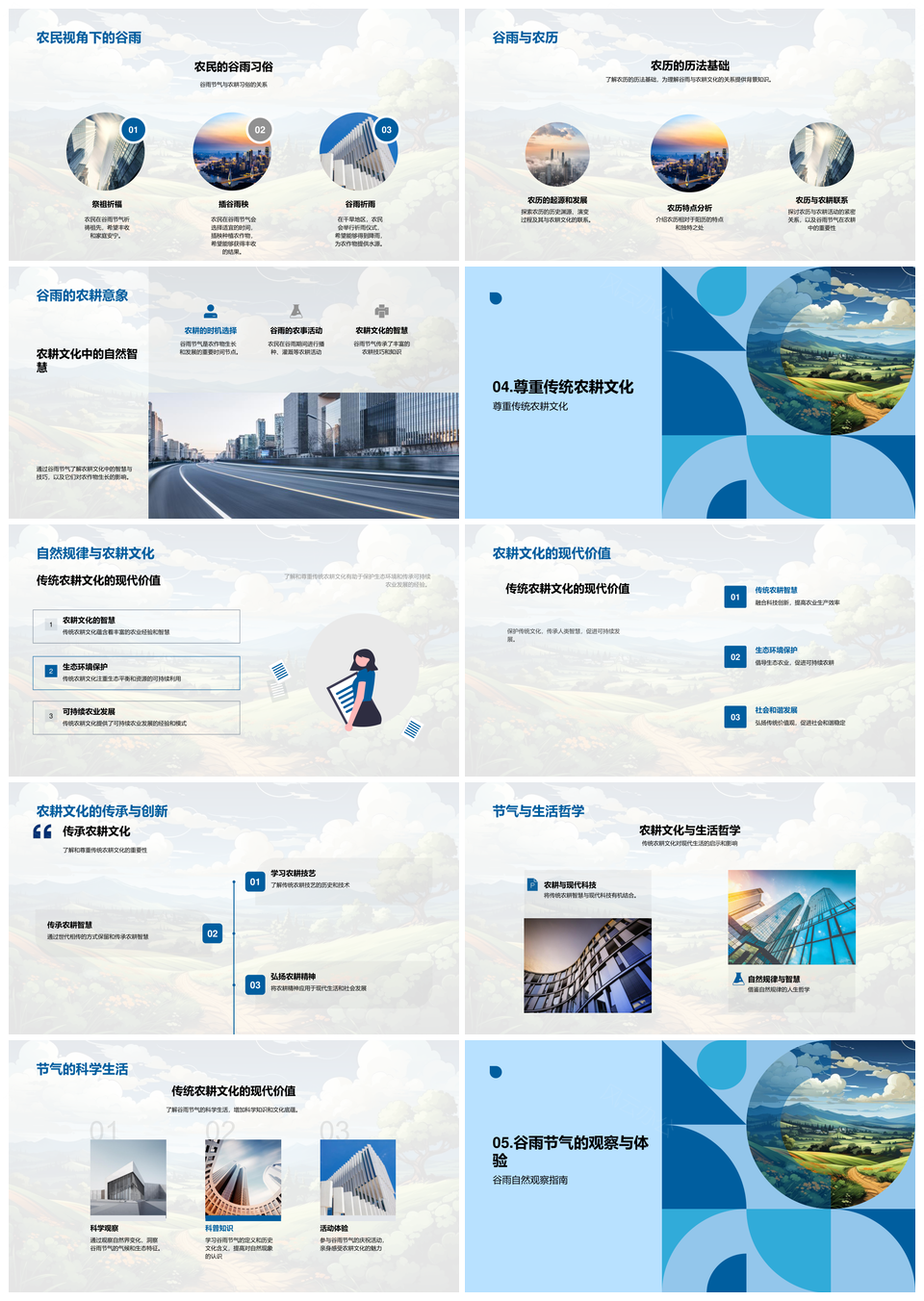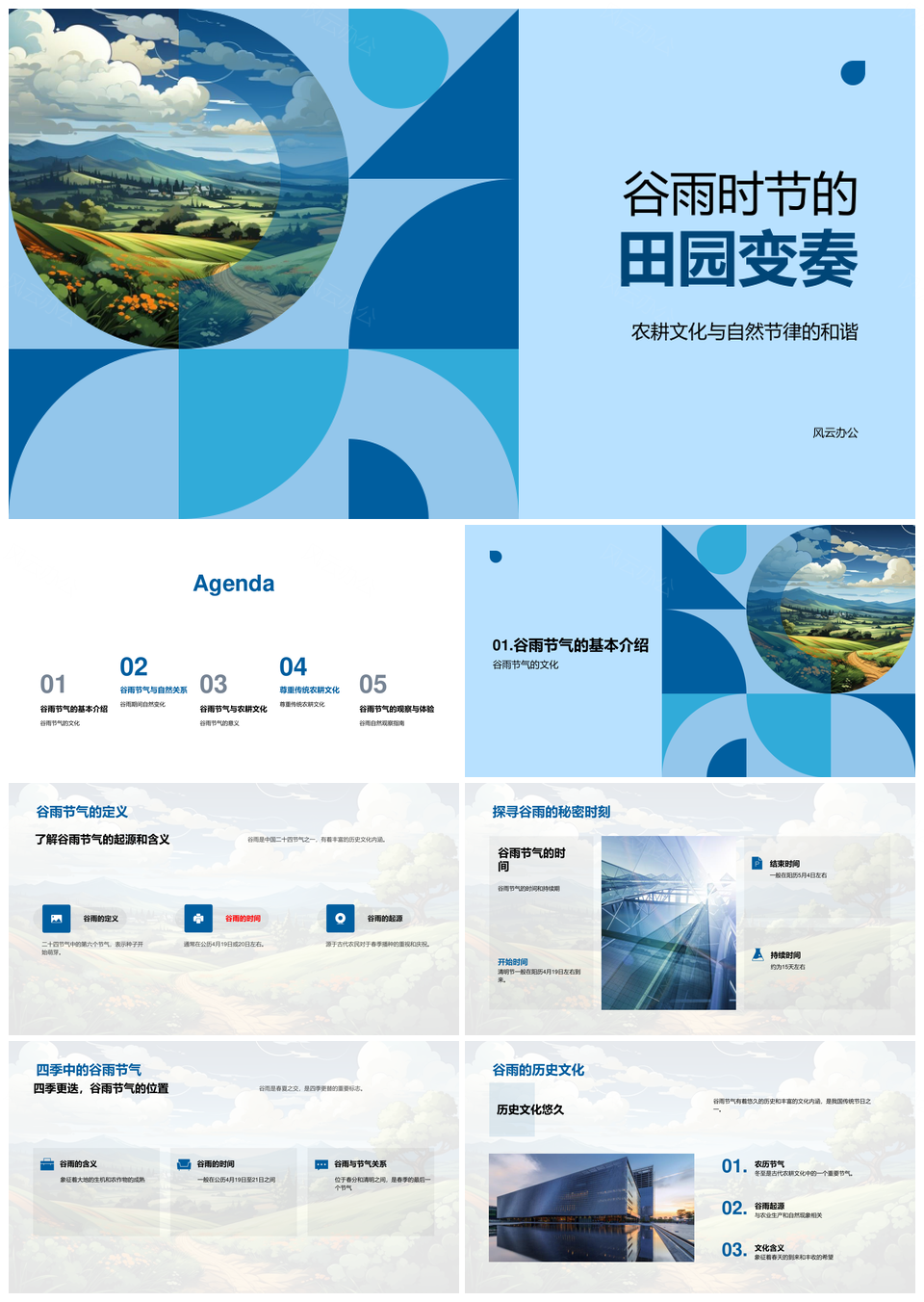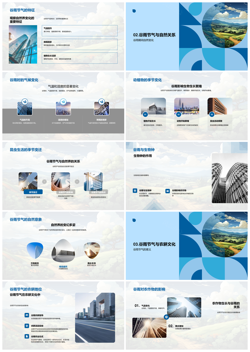 这是一张谷雨农耕顺应自然作物生长PPT模板,包含谷雨、农耕、顺应、自然、作物、生长等主题内容,也可用作谷雨农耕顺应自然、农耕顺应自然作物、顺应自然作物生长、谷雨农耕顺应、农耕顺应自然、顺应自然作物、自然作物生长、谷雨农耕、农耕顺应、顺应自然、自然作物、作物生长、谷雨顺应、农耕自然、谷雨自然作物等PPT场景使用。 风云办公提供的谷雨农耕顺应自然作物生长PPT模板,下载格式为pptx,一共33页,作品中文字及图均可以修改和编辑,图片更改请在作品中右键图片并更换,文字修改请直接点击文字进行修改。