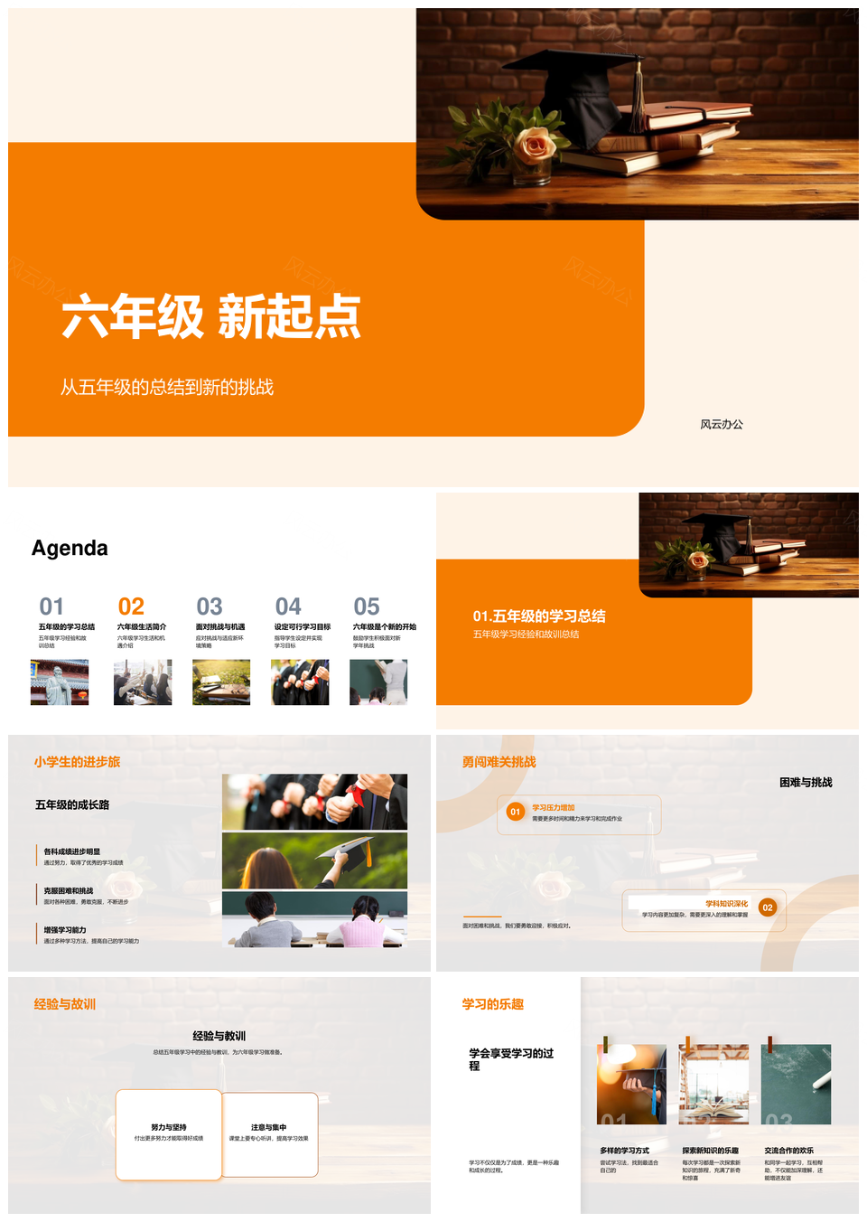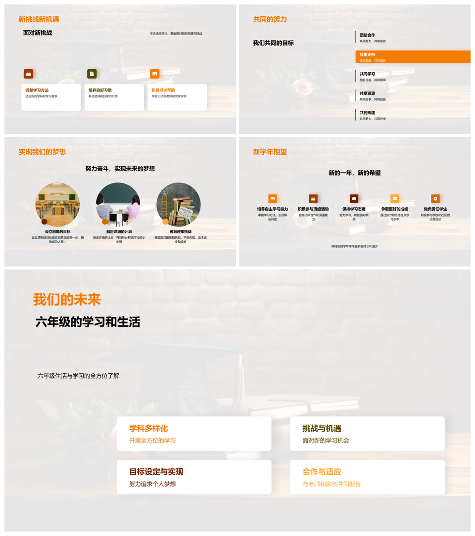 六年级启程五年级课程回顾与学习挑战PPT模板
