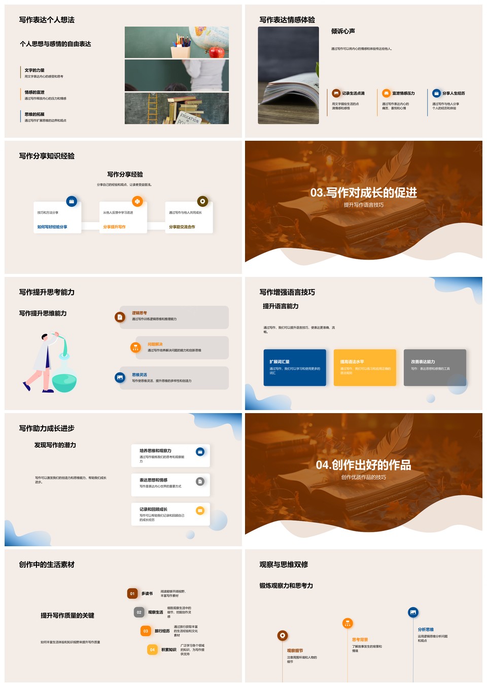 这是一张写作启思练语育能共享创新教育PPT模板,包含写作、启思、练语、育能、共享、创新、教育等主题内容,也可用作写作启思练语育能、启思练语育能共享、练语育能共享创新、育能共享创新教育、写作启思练语、启思练语育能、练语育能共享、育能共享创新、共享创新教育、写作启思、启思练语、练语育能、育能共享、共享创新、创新教育等PPT场景使用。