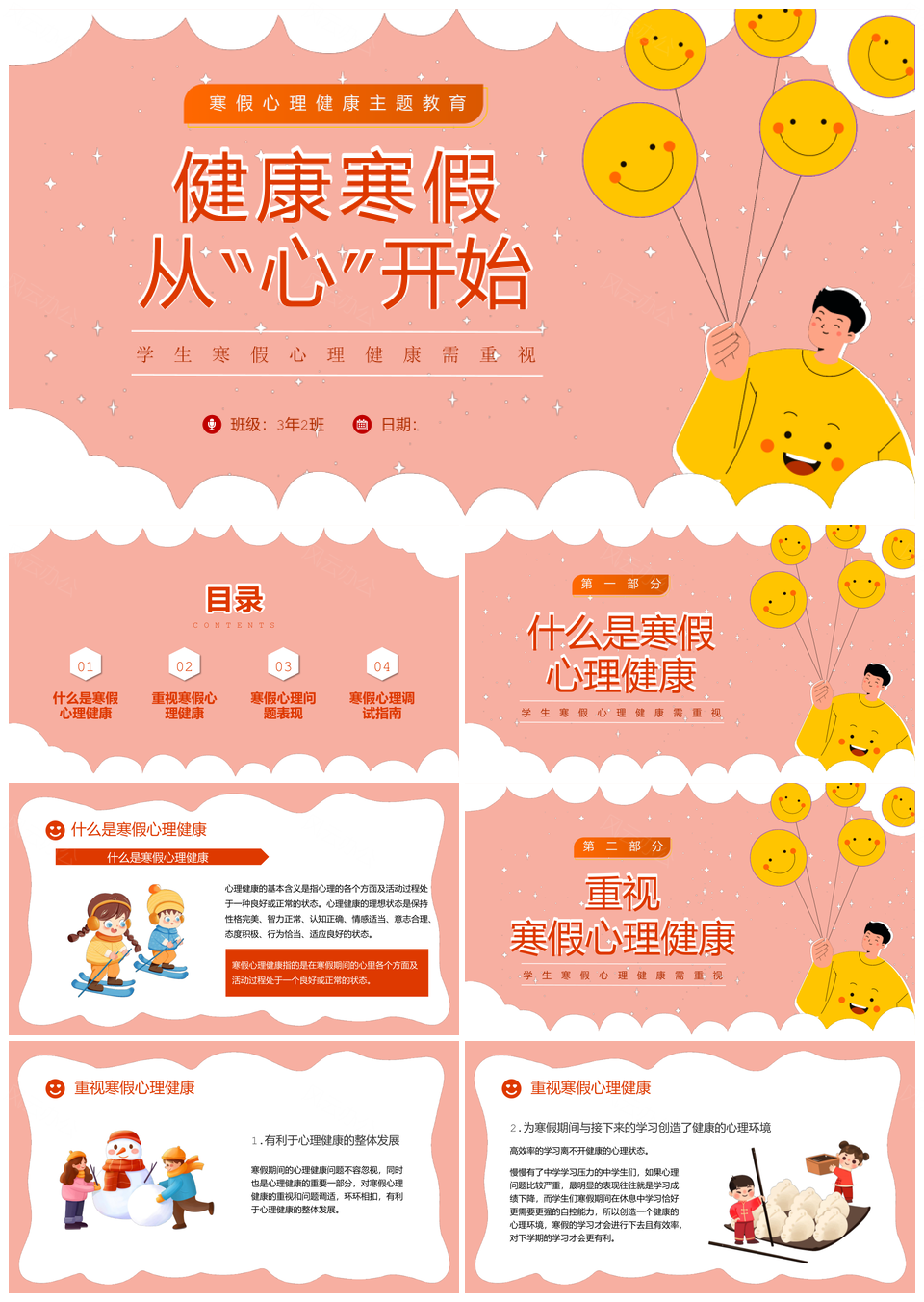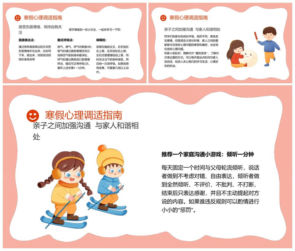 这是一张寒假安全心理健康教育主题班会PPT模板,包含寒假、安全、心理健康、教育、主题、班会等主题内容,也可用作寒假安全心理健康教育、安全心理健康教育主题、心理健康教育主题班会、寒假安全心理健康、安全心理健康教育、心理健康教育主题、教育主题班会、寒假主题班会、寒假安全教育、安全教育主题、安全主题班会、寒假安全、安全心理健康、心理健康教育、主题班会等PPT场景使用。
