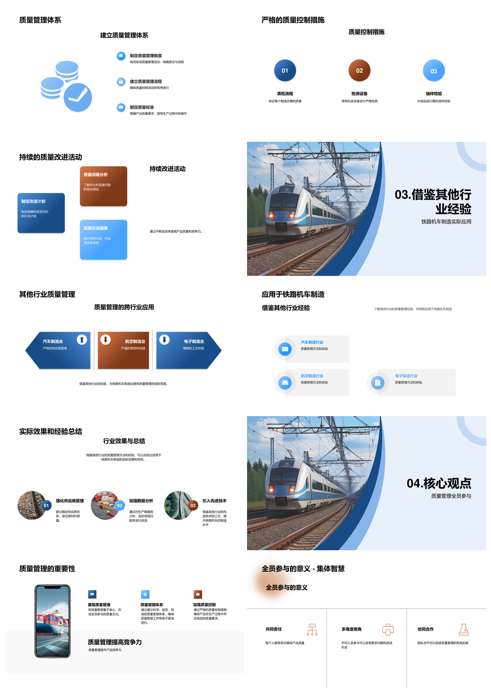 风云办公提供的铁路机车制造质量管理实践原理PPT模板,下载格式为pptx,一共23页,作品中文字及图均可以修改和编辑,图片更改请在作品中右键图片并更换,文字修改请直接点击文字进行修改。