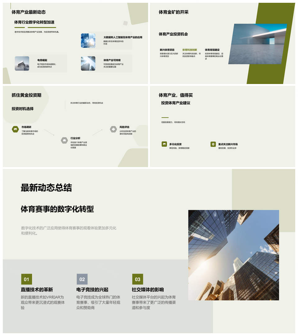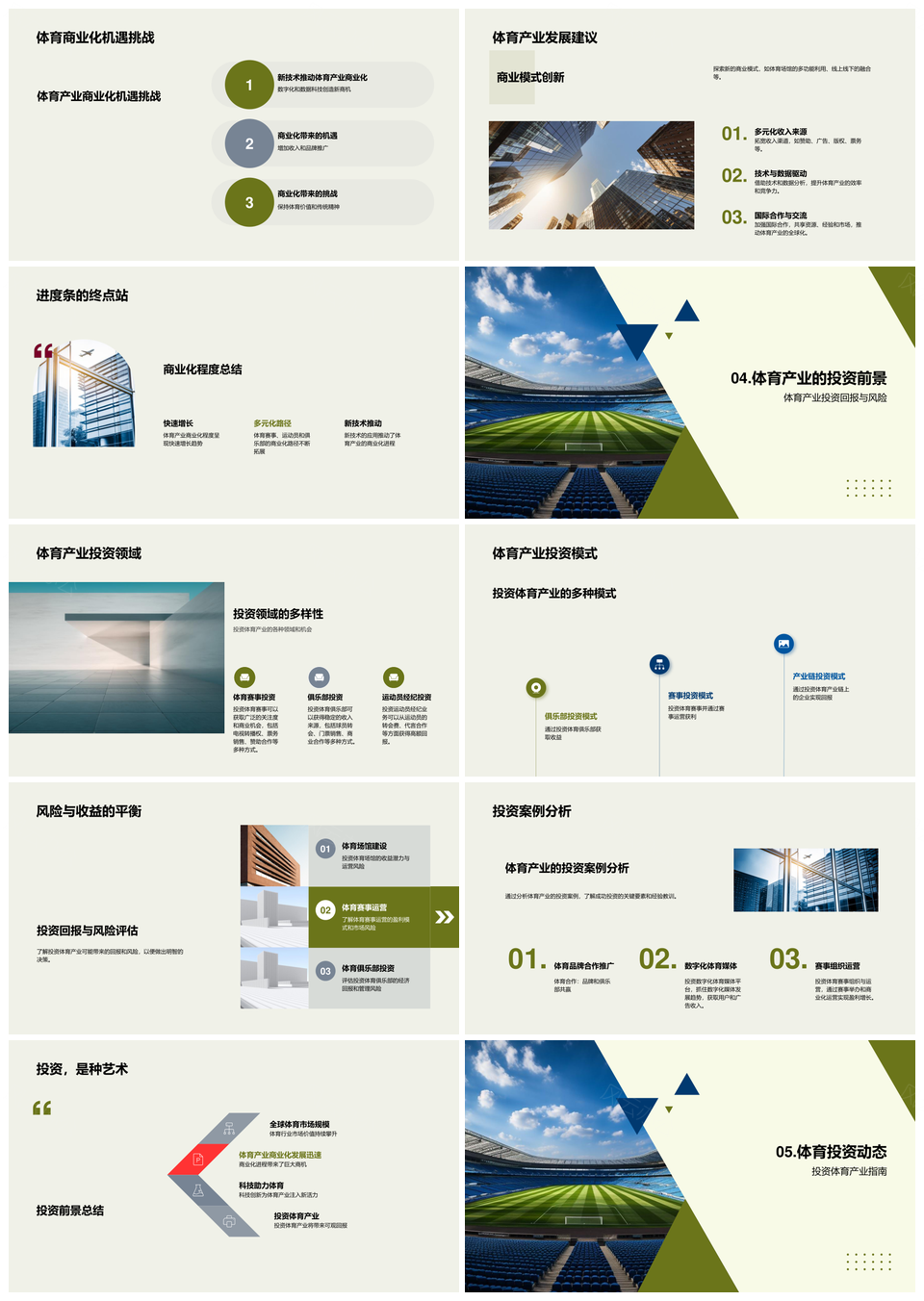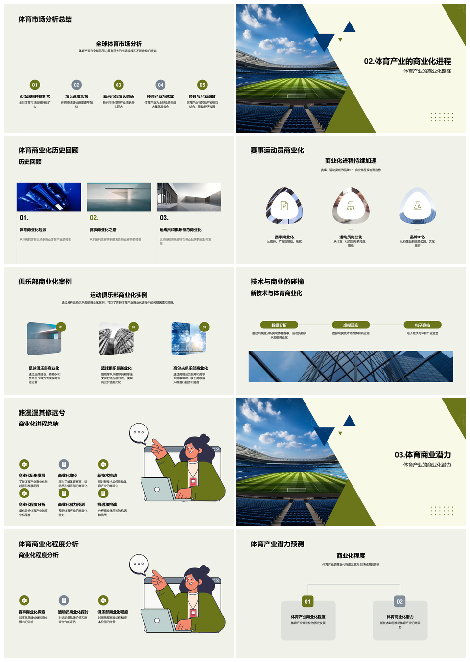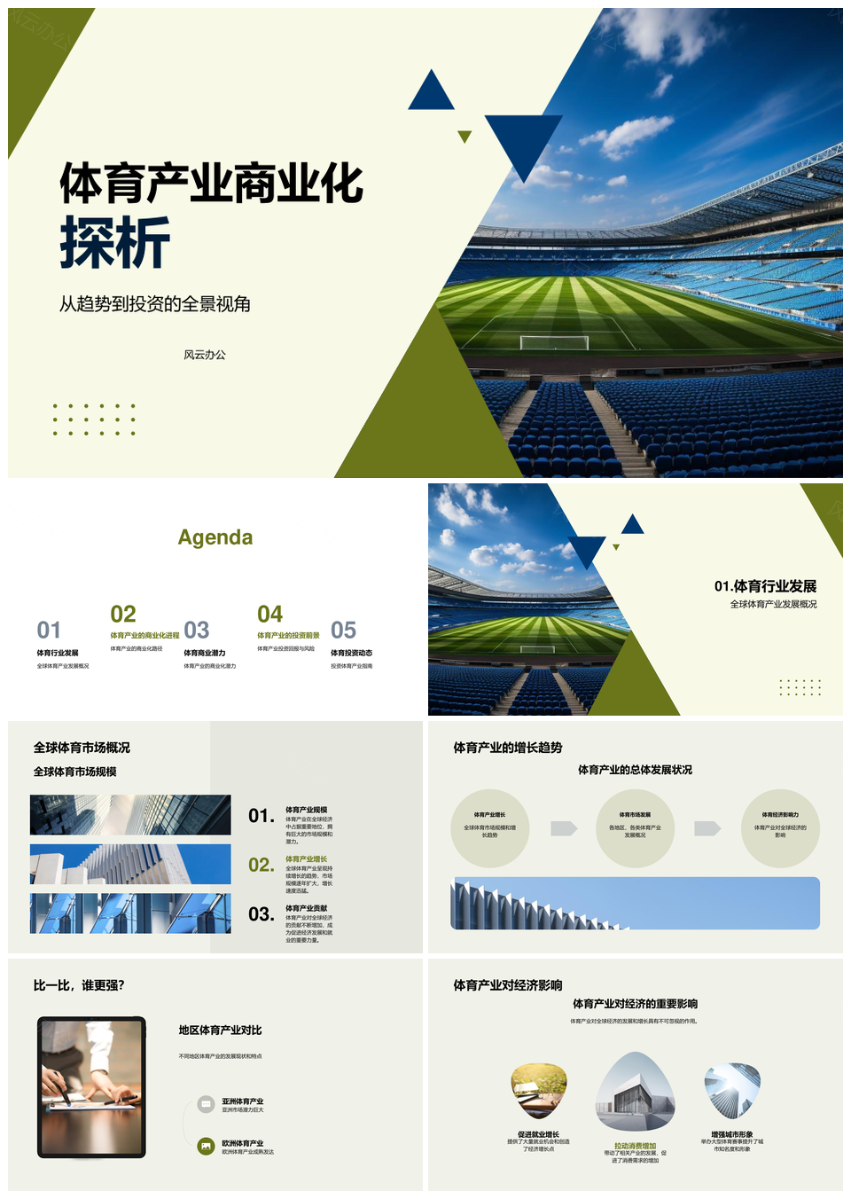 风云办公提供的全球体育产业商业化趋势与投资分析PPT模板,下载格式为pptx,一共33页,作品中文字及图均可以修改和编辑,图片更改请在作品中右键图片并更换,文字修改请直接点击文字进行修改。