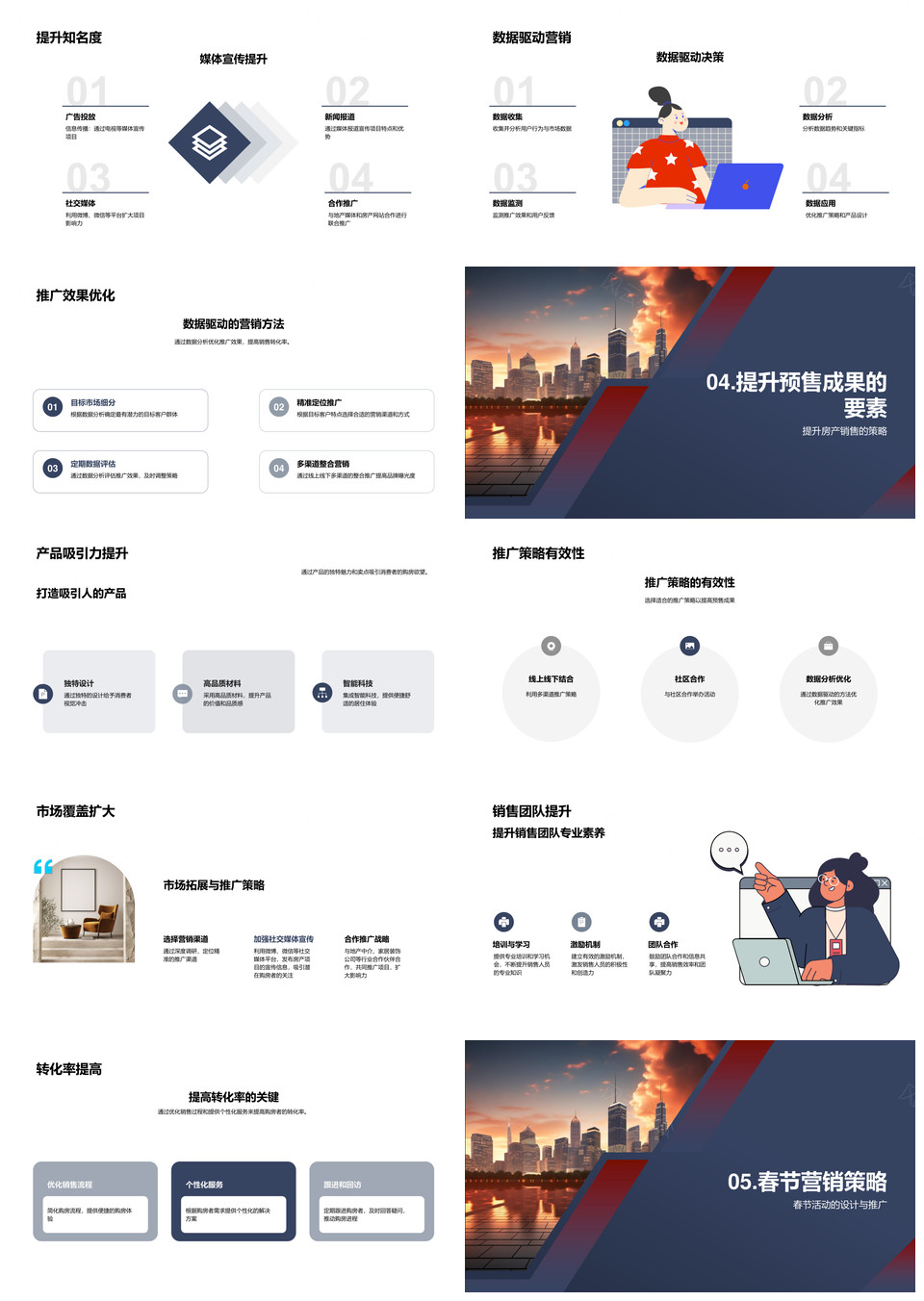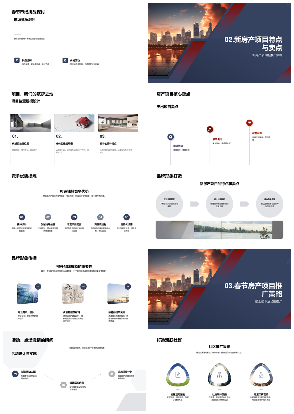 春节房产线上线下预售策略激活新项目市场竞争PPT模板推荐
