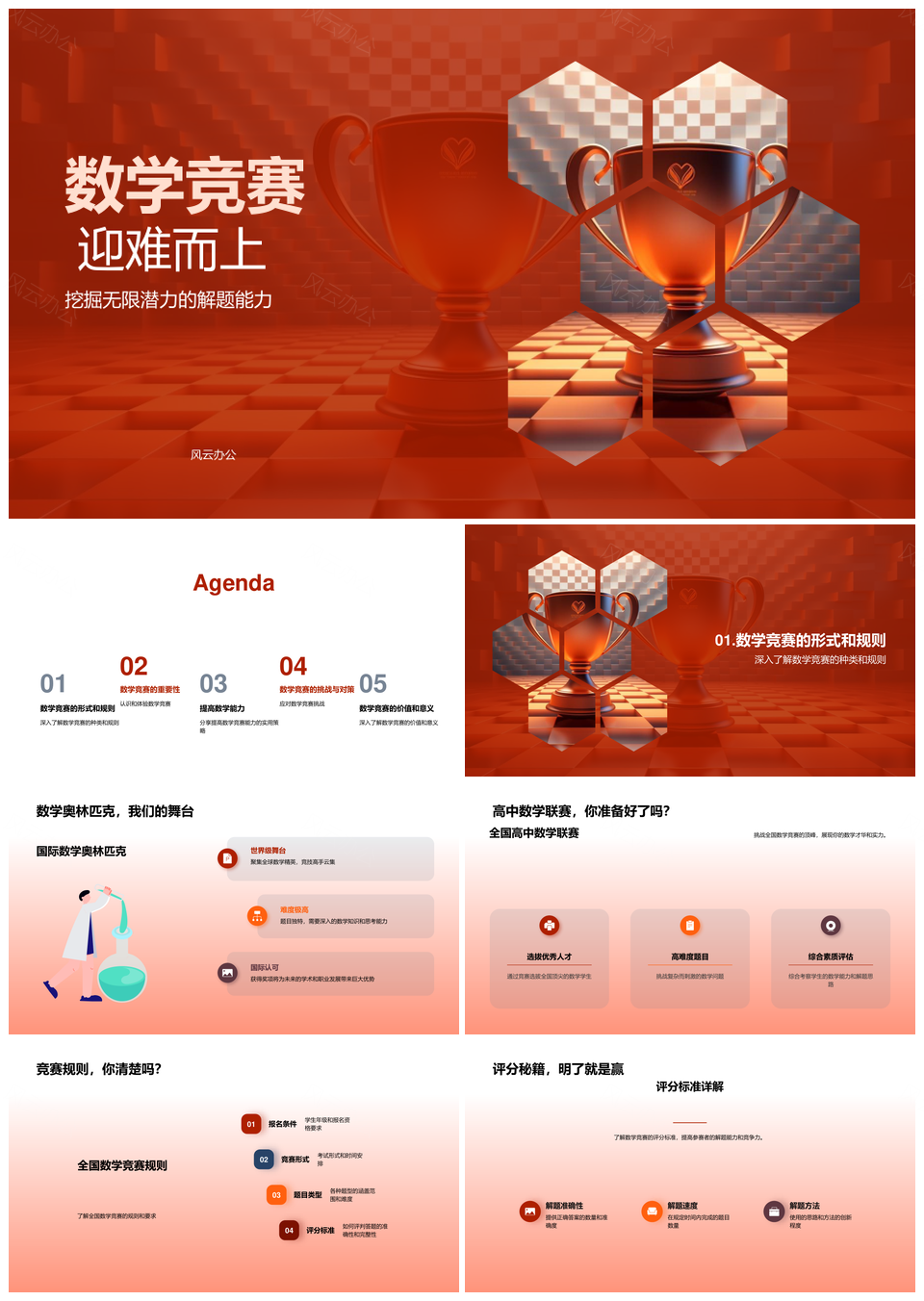 数学竞赛解题思维团队协作奥赛联赛规则解析PPT模板推荐