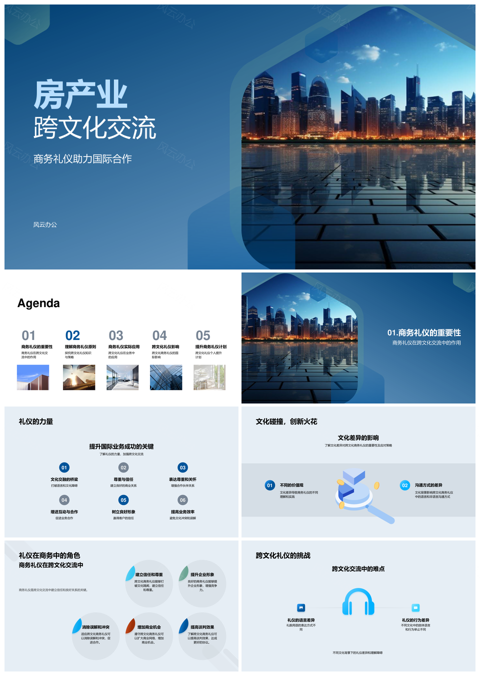 风云办公提供的房产业跨文化商务礼仪与国际合作PPT模板,下载格式为pptx,一共33页,作品中文字及图均可以修改和编辑,图片更改请在作品中右键图片并更换,文字修改请直接点击文字进行修改。