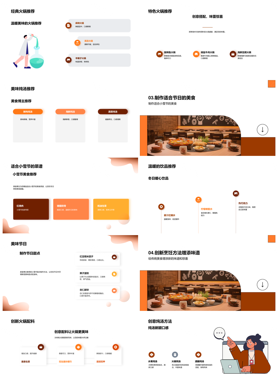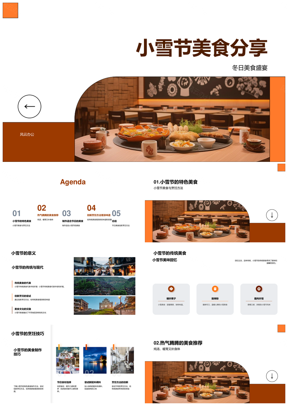 小雪节冬日美食盛宴热气腾腾甜点庆祝PPT模板推荐