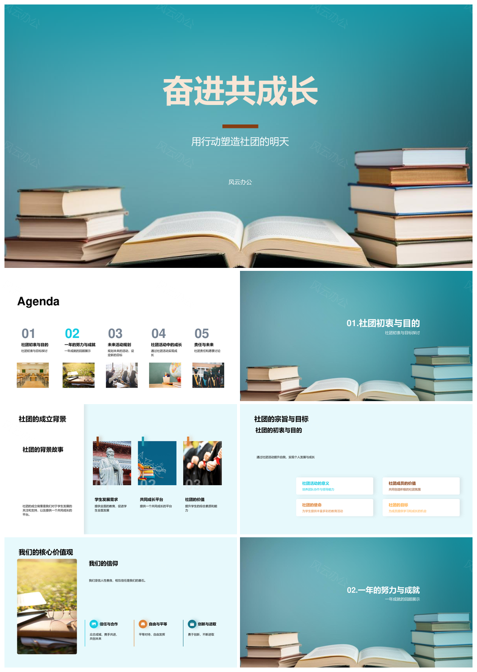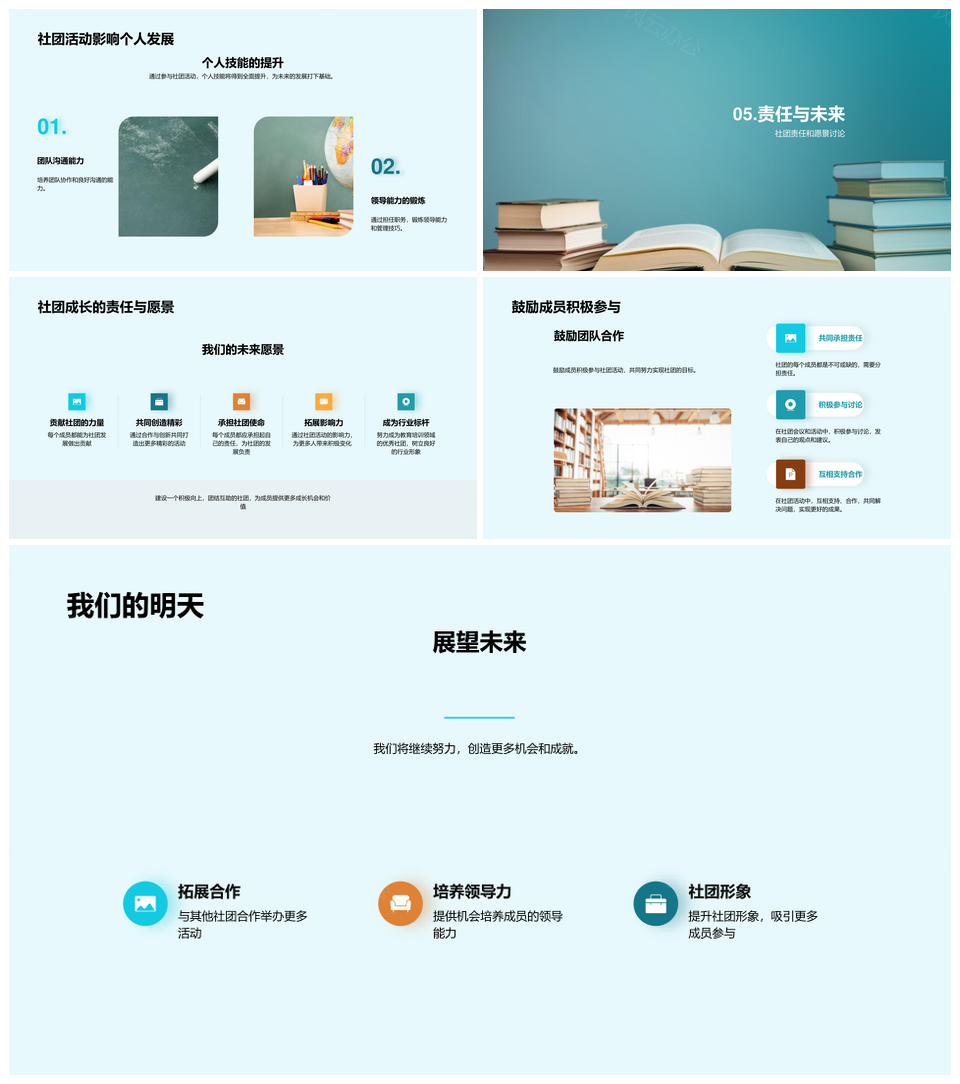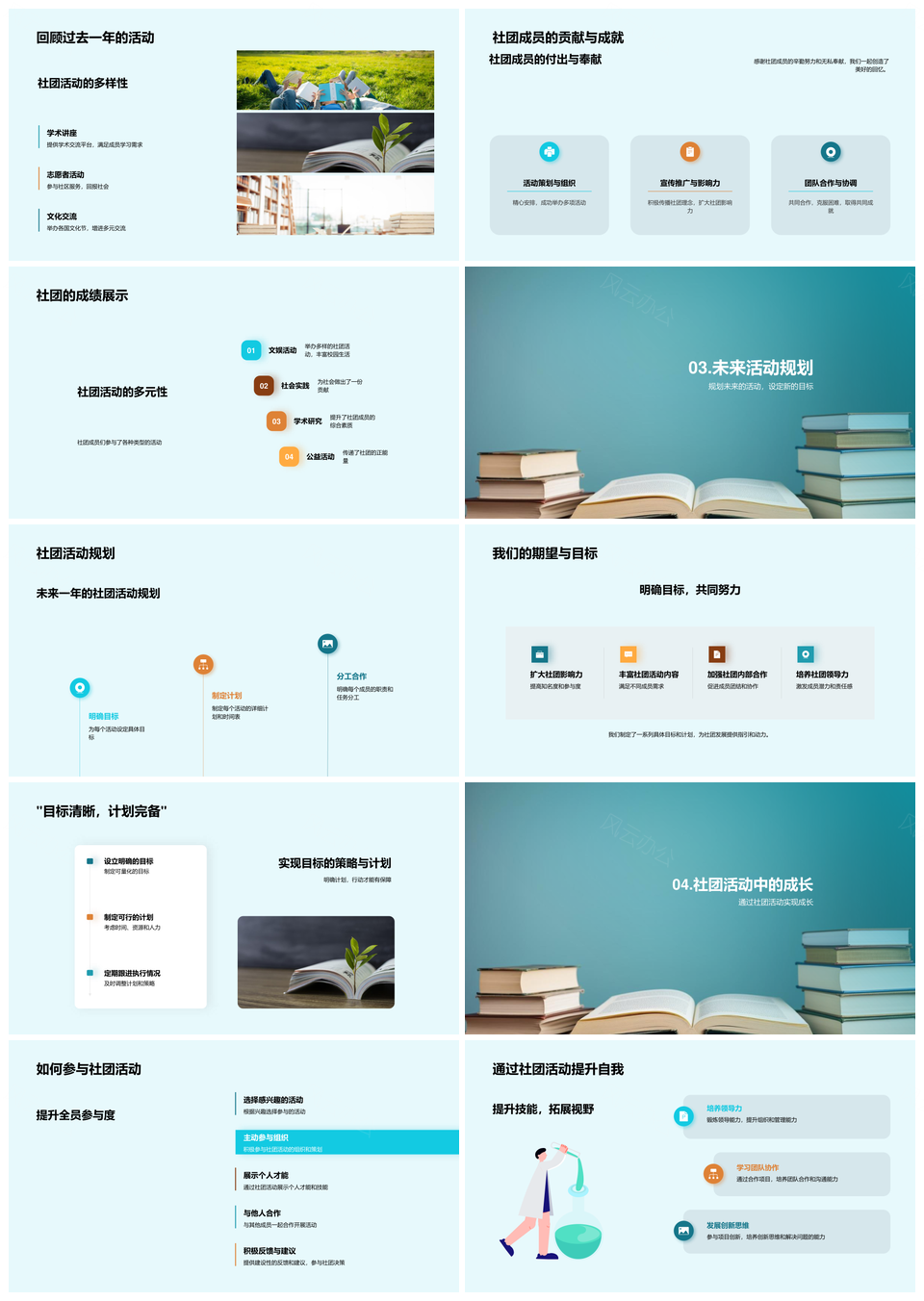社团发展规划使命愿景活动成果成长展示PPT模板