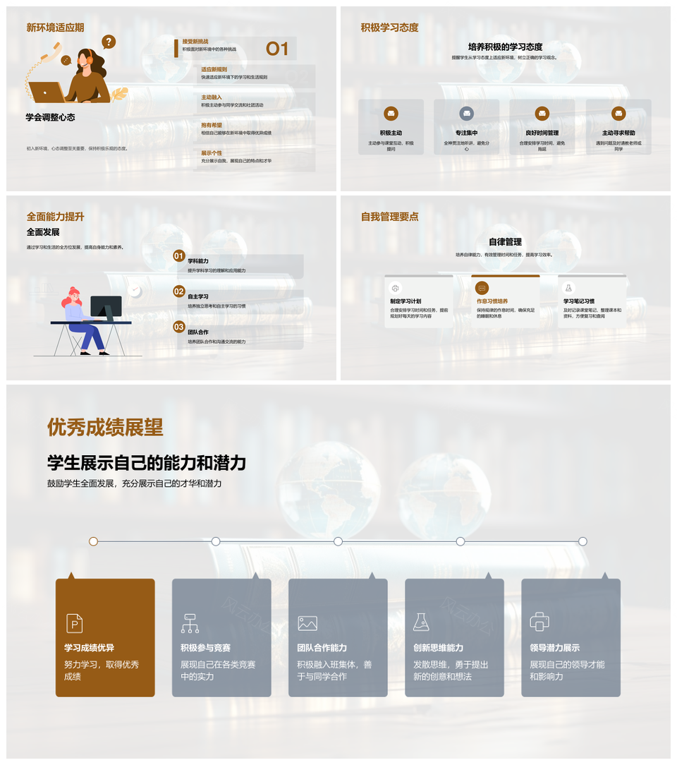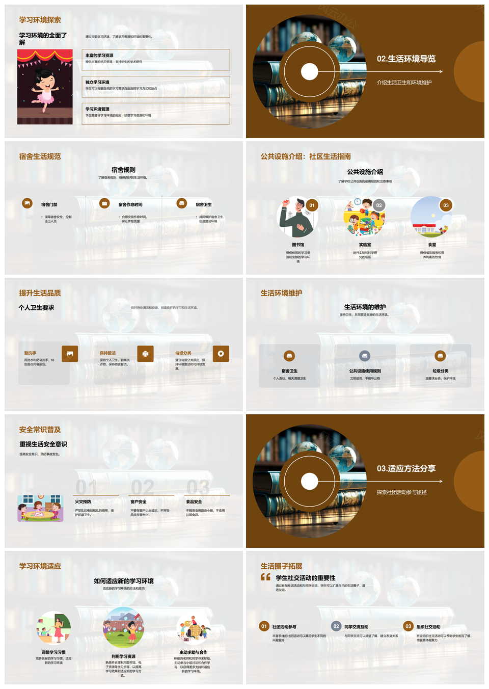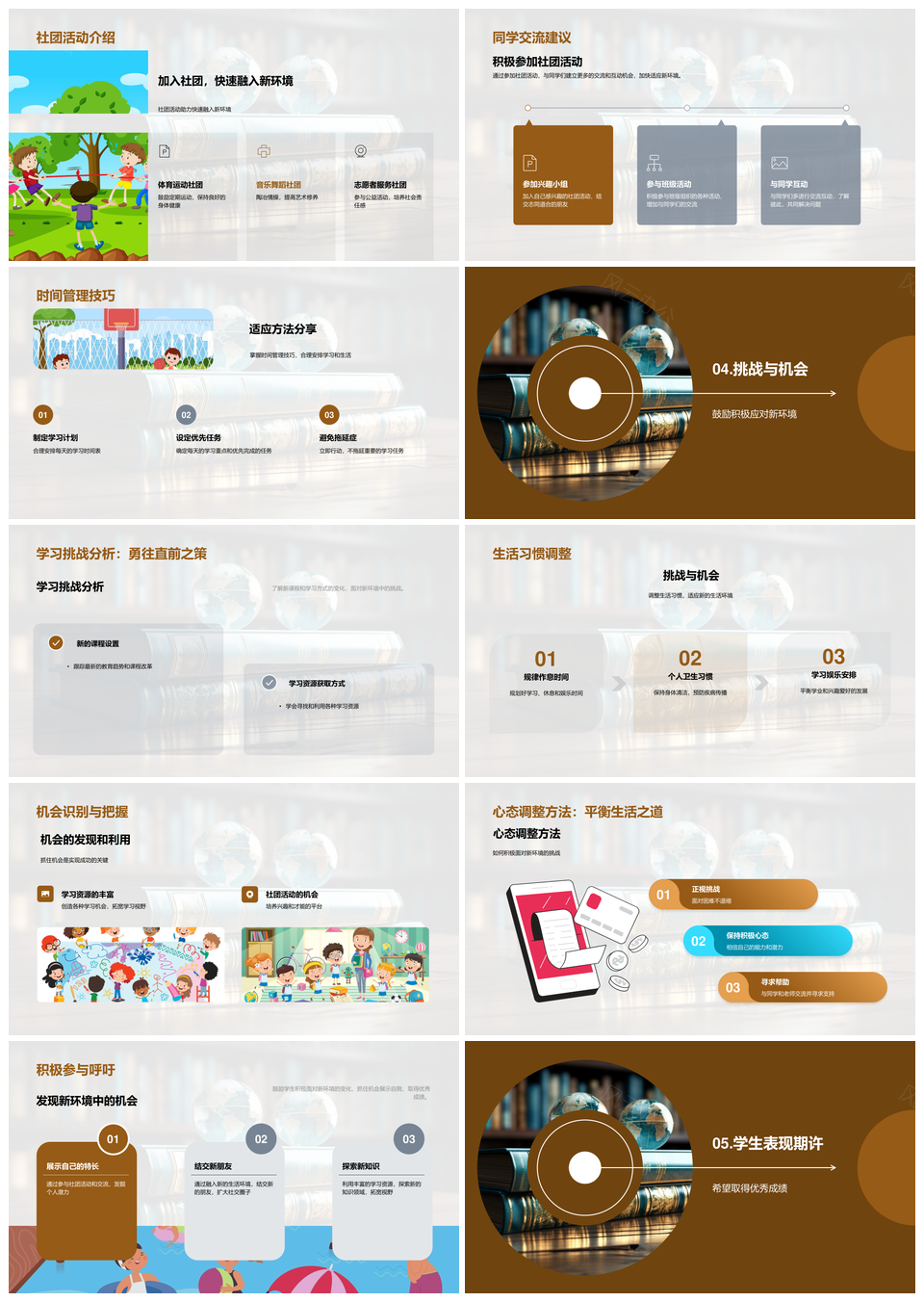 新生适应学习社团课程宿舍社交时间管理书籍指南PPT模板推荐