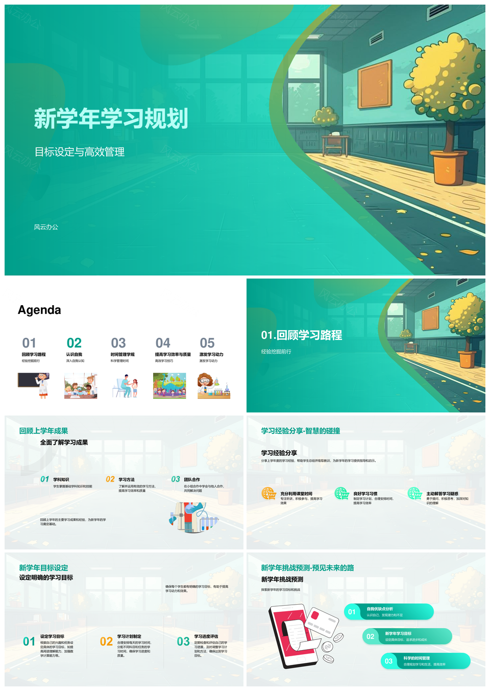 风云办公提供的新学年学习目标高效科学时间管理PPT模板,下载格式为pptx,一共28页,作品中文字及图均可以修改和编辑,图片更改请在作品中右键图片并更换,文字修改请直接点击文字进行修改。