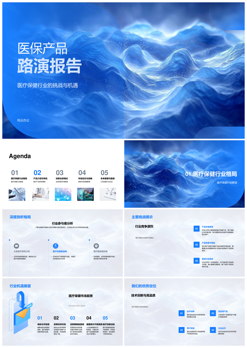 医疗保健医保产品挑战机遇市场定位业务模式研发营销路演报告PPT模板推荐