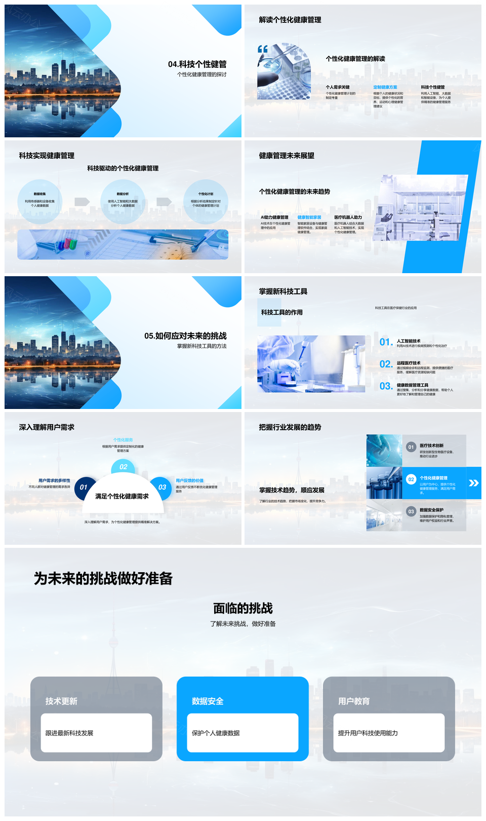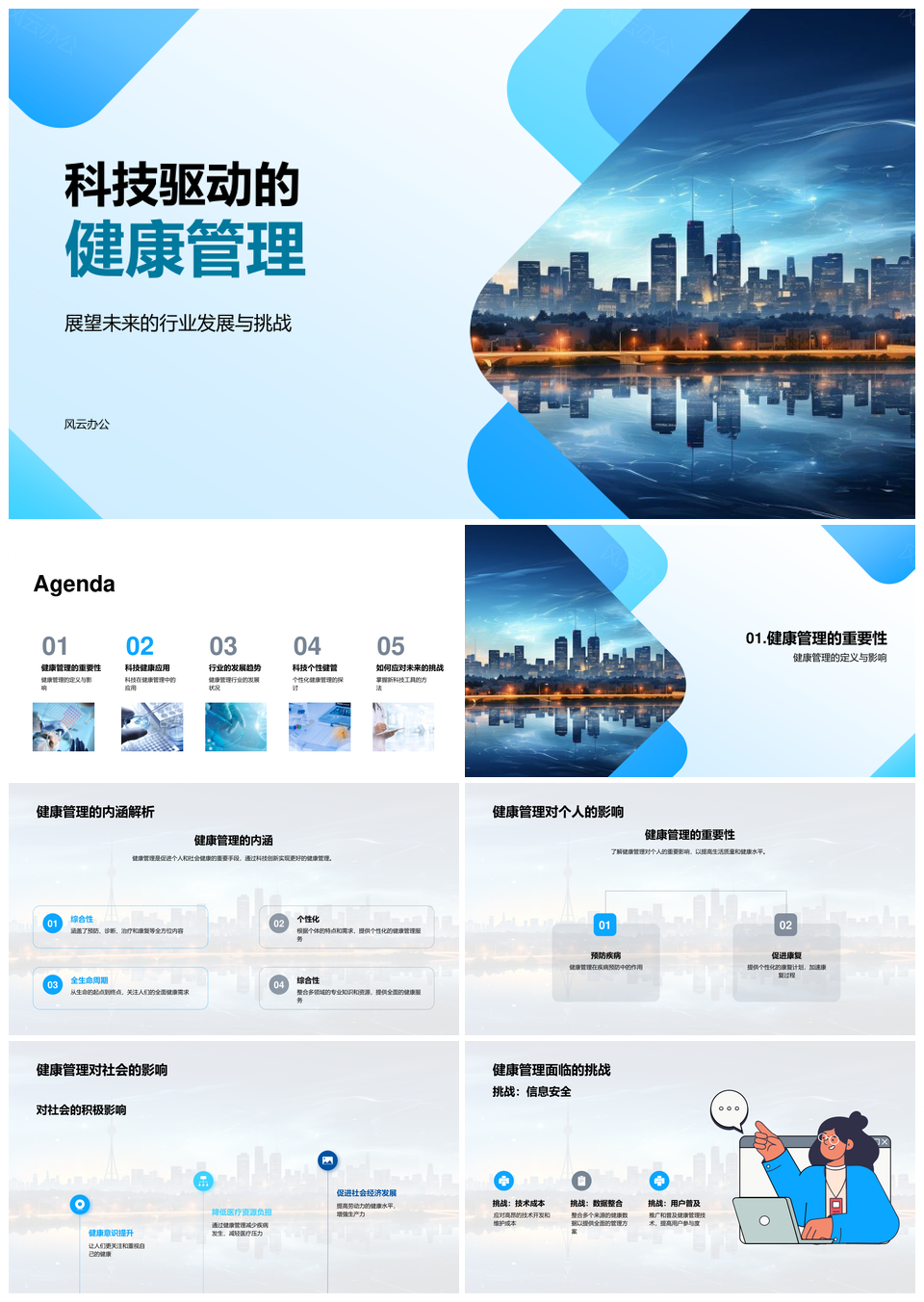 风云办公提供的科技创新驱动个性化健康管理发展PPT模板,下载格式为pptx,一共27页,作品中文字及图均可以修改和编辑,图片更改请在作品中右键图片并更换,文字修改请直接点击文字进行修改。
