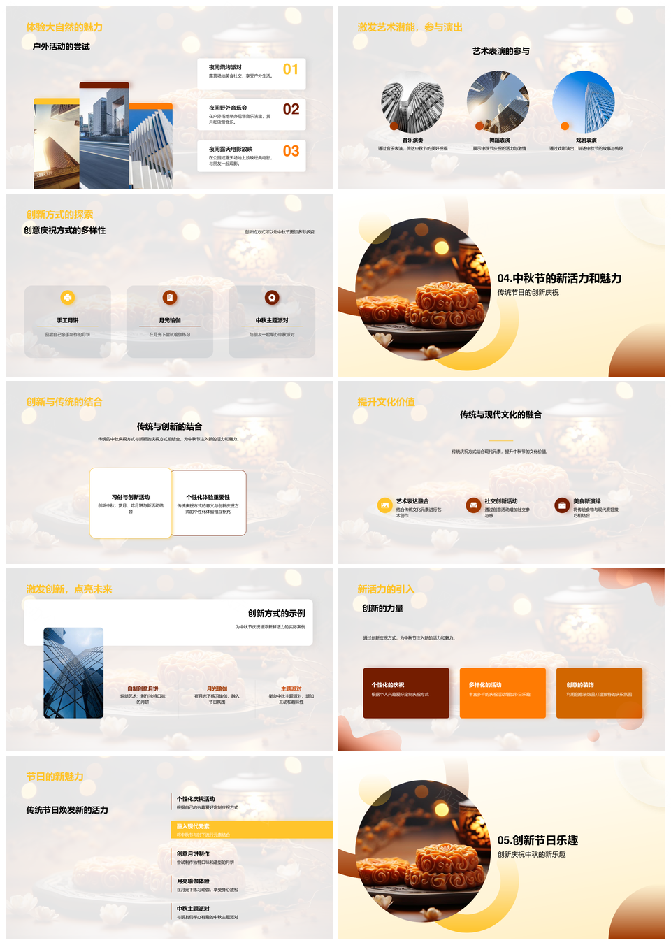 风云办公提供的创新传统中秋自制月饼月亮瑜伽派对PPT模板,下载格式为pptx,一共33页,作品中文字及图均可以修改和编辑,图片更改请在作品中右键图片并更换,文字修改请直接点击文字进行修改。