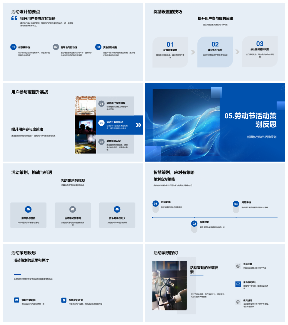 这是一张劳动节新媒体营销活动策划PPT模板,包含劳动节、新媒体、营销、活动策划等主题内容,也可用作劳动节新媒体营销活动、劳动节新媒体营销策划、劳动节新媒体活动策划、劳动节营销活动策划、新媒体营销活动策划、劳动节新媒体营销、劳动节新媒体活动、劳动节营销活动、劳动节活动策划、新媒体营销活动、新媒体活动策划、营销活动策划、劳动节营销、新媒体营销、活动策划等PPT场景使用。