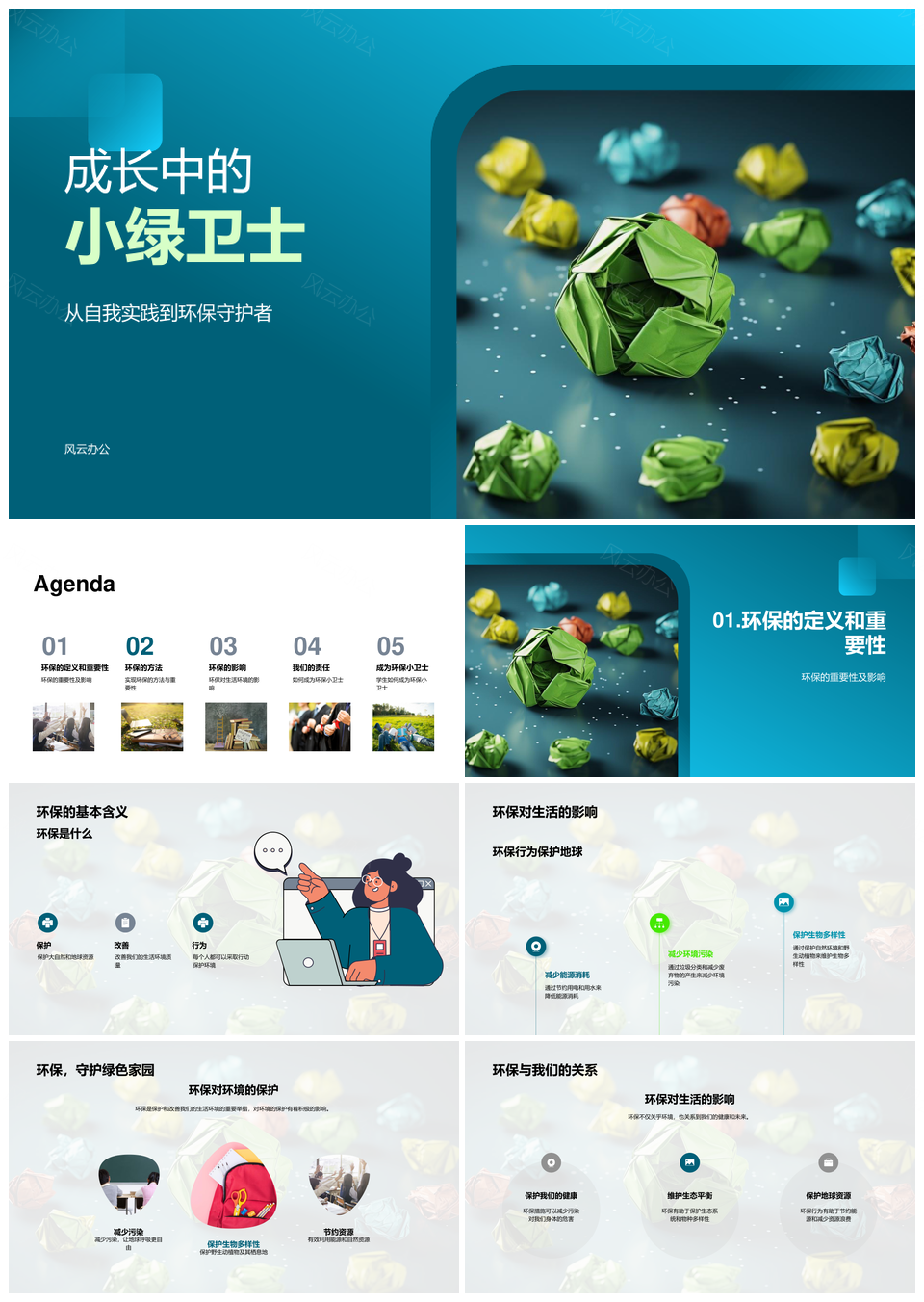 风云办公提供的小绿卫士成长践行环保教育行动PPT模板,下载格式为pptx,一共33页,作品中文字及图均可以修改和编辑,图片更改请在作品中右键图片并更换,文字修改请直接点击文字进行修改。
