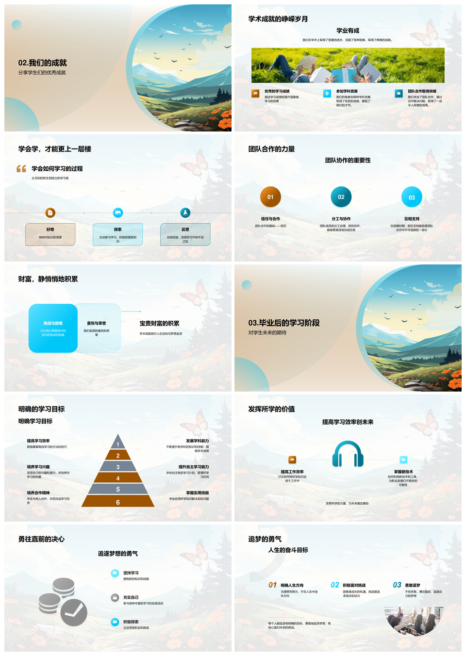 这是一张蝶变追梦学术挑战成就人生PPT模板,包含蝶变、追梦、学术、挑战、成就、人生等主题内容,也可用作蝶变追梦学术挑战、追梦学术挑战成就、学术挑战成就人生、蝶变追梦学术、追梦学术挑战、学术挑战成就、挑战成就人生、蝶变追梦、追梦学术、学术挑战、挑战成就、成就人生、学术成就、挑战人生、追梦挑战等PPT场景使用。 风云办公提供的蝶变追梦学术挑战成就人生PPT模板,下载格式为pptx,一共28页,作品中文字及图均可以修改和编辑,图片更改请在作品中右键图片并更换,文字修改请直接点击文字进行修改。
