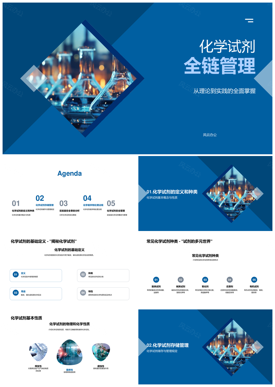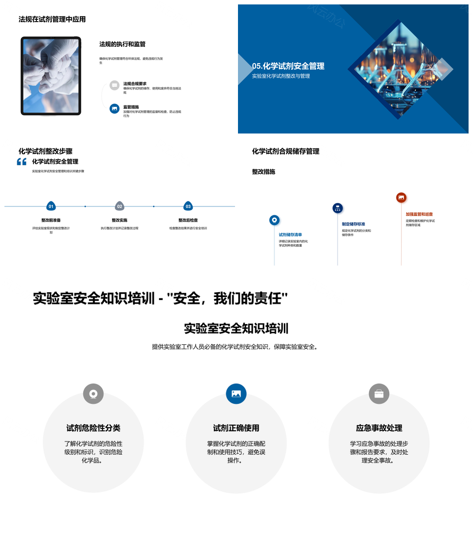 风云办公提供的化学试剂全链储存与实验室安全管理PPT模板,下载格式为pptx,一共23页,作品中文字及图均可以修改和编辑,图片更改请在作品中右键图片并更换,文字修改请直接点击文字进行修改。