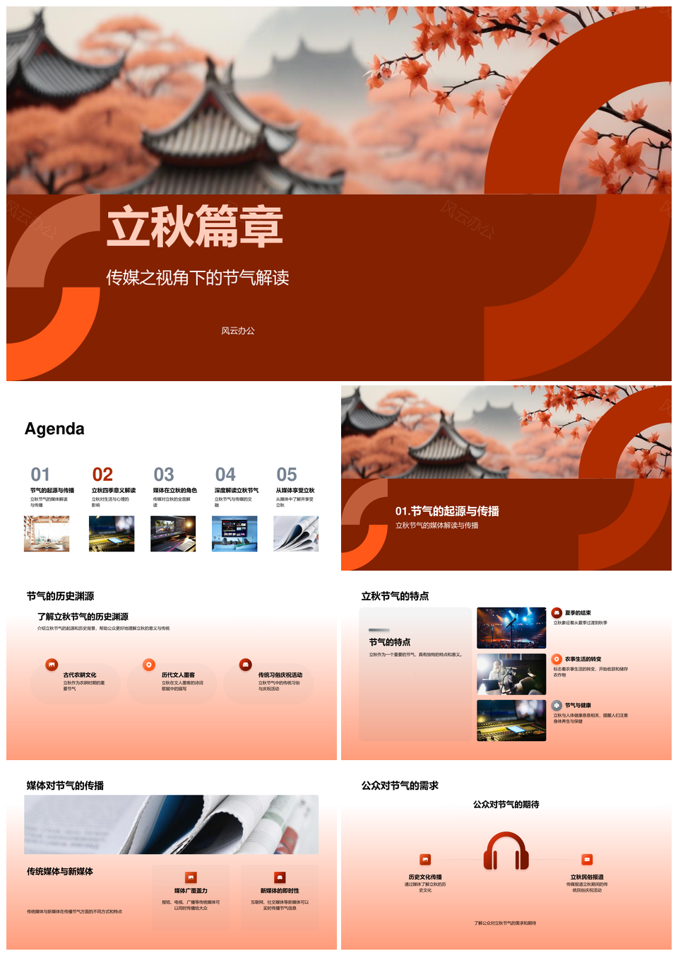立秋传媒讲座解读节气传播传统媒体秋叶生活PPT模板推荐