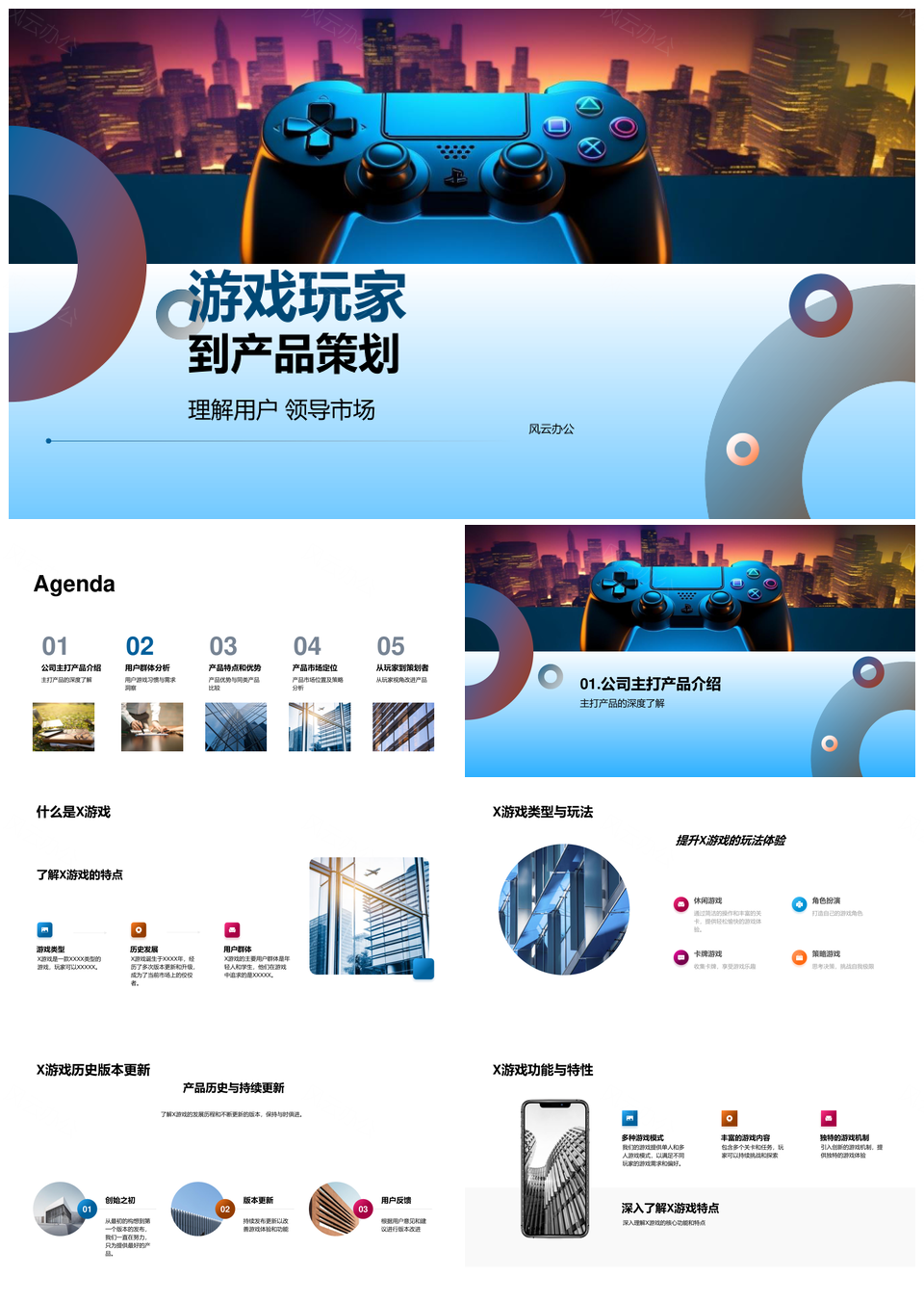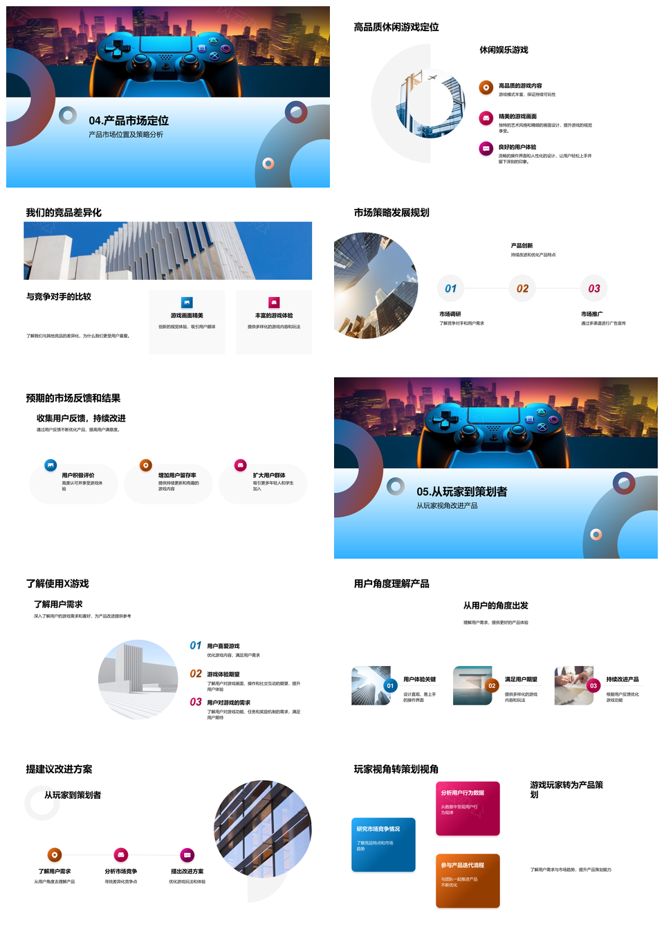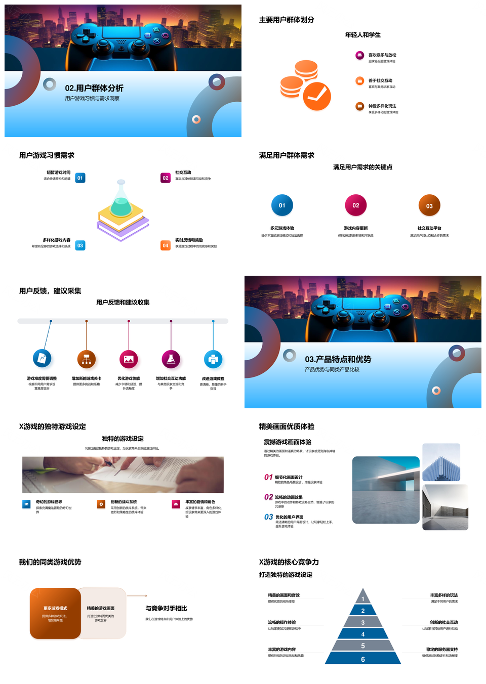 游戏玩家转产品策划解析X游戏用户需求定位竞品类型控PPT模板推荐