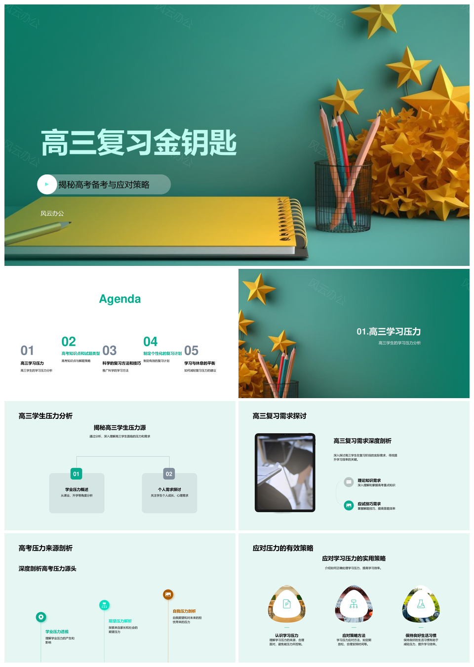 风云办公提供的高三复习金钥匙高考备考策略考点解题PPT模板,下载格式为pptx,一共24页,作品中文字及图均可以修改和编辑,图片更改请在作品中右键图片并更换,文字修改请直接点击文字进行修改。