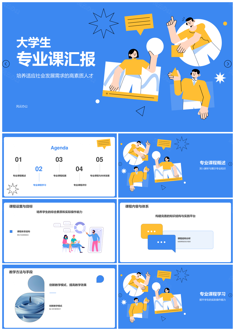 蓝色插画大学生专业课汇报学习能力成果展示PPT模板