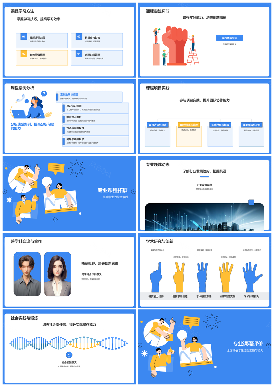 蓝色插画大学生专业课汇报学习能力成果展示PPT模板推荐